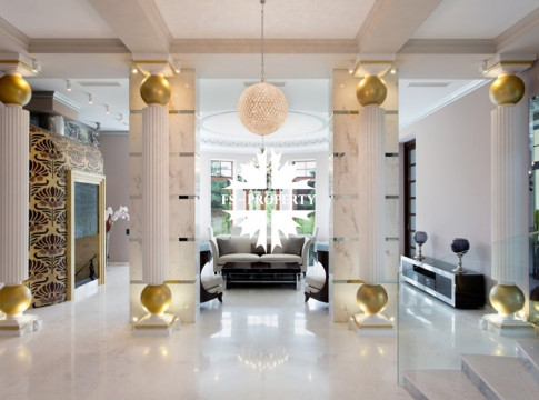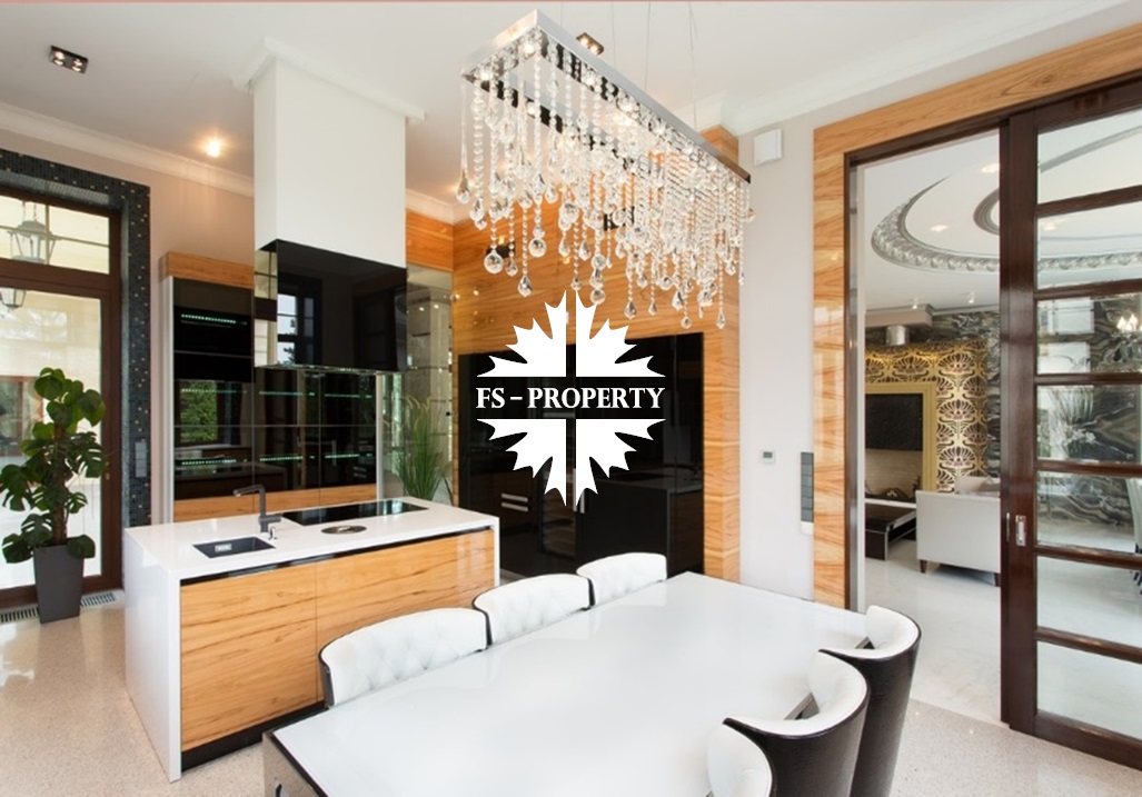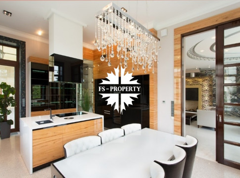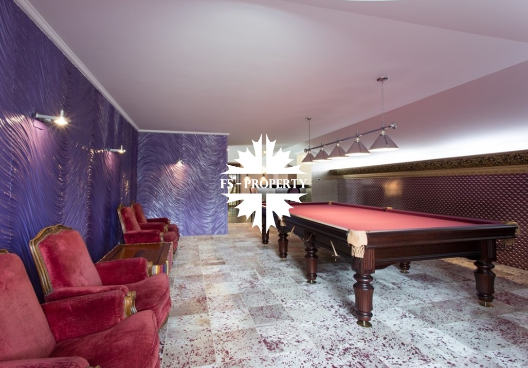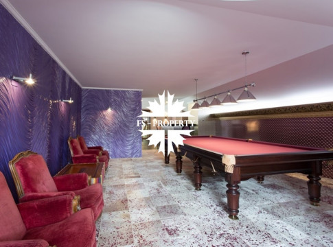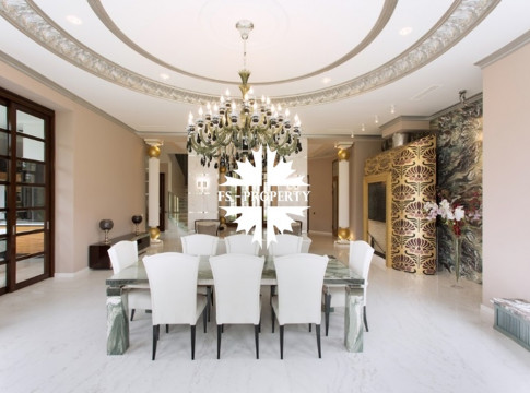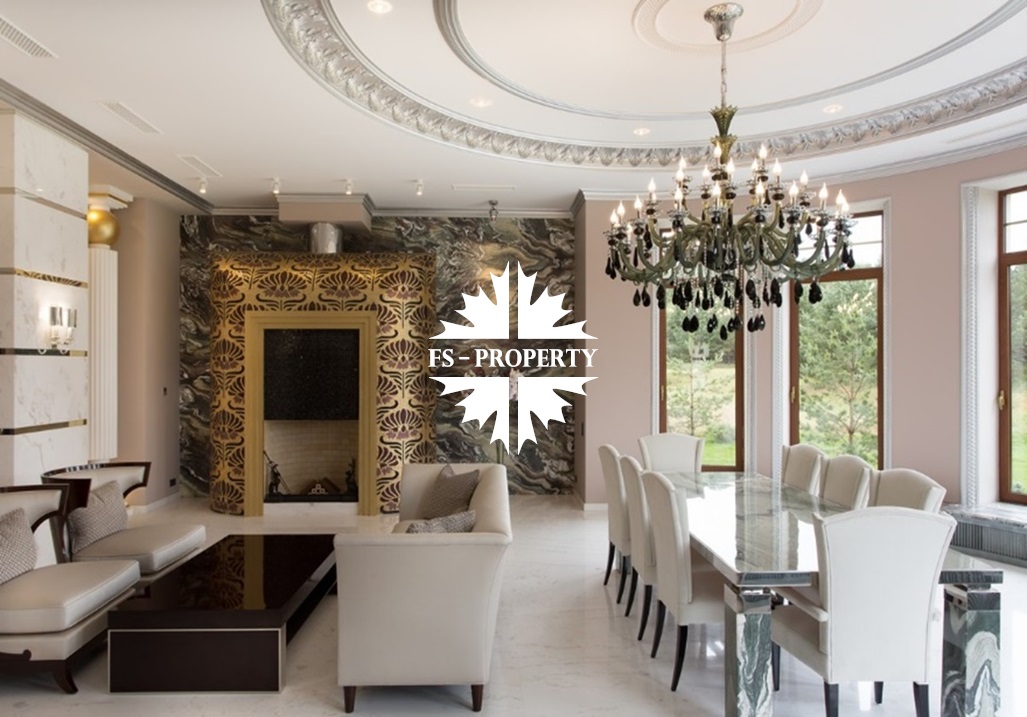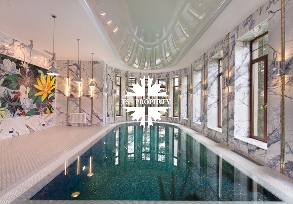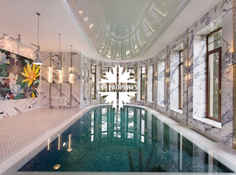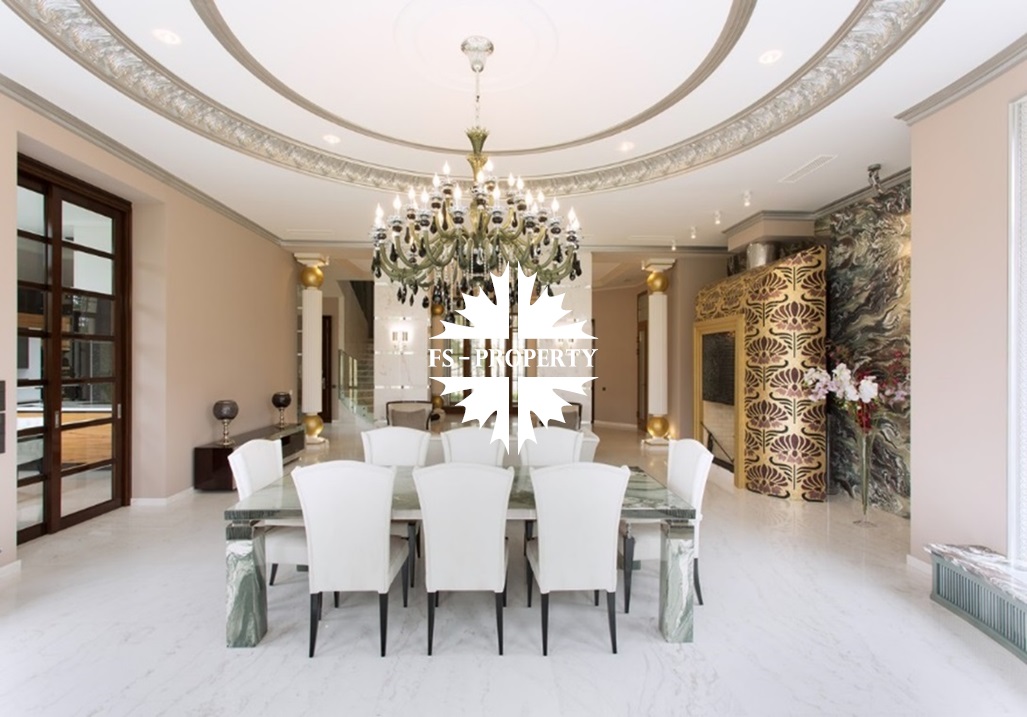 Планировкой предусмотрены: гостиная с действующим камином, кабинет, столовая, кухня со всей необходимой техникой и местом для завтрака. Две больших террасы и зимний сад. Бильярдная, кинозал, большой бассейн, сауна.