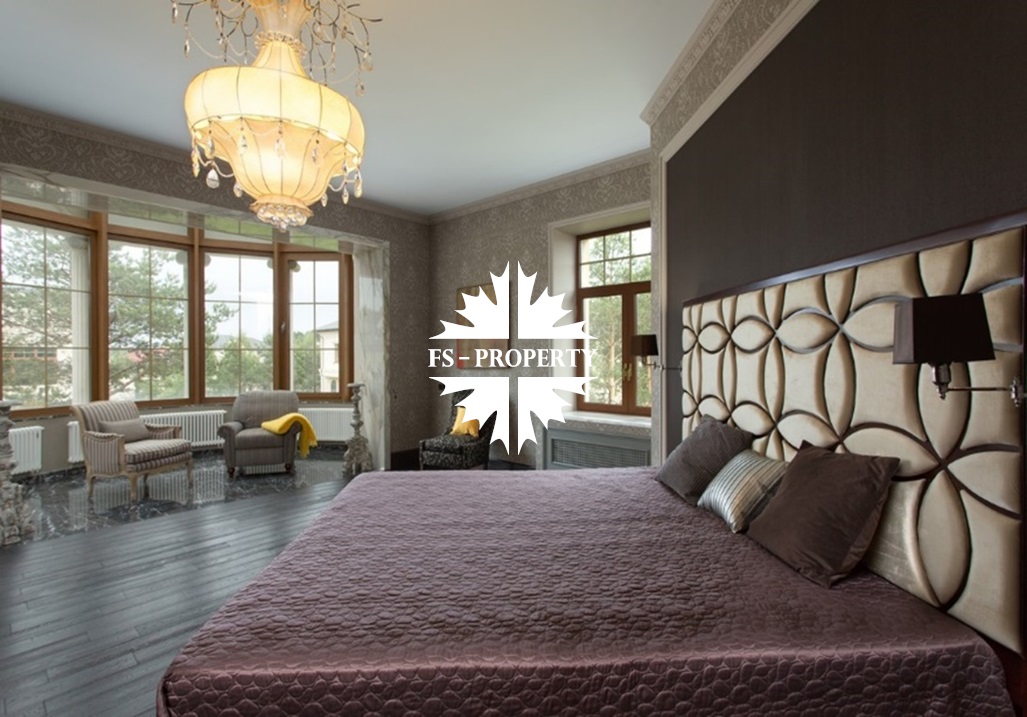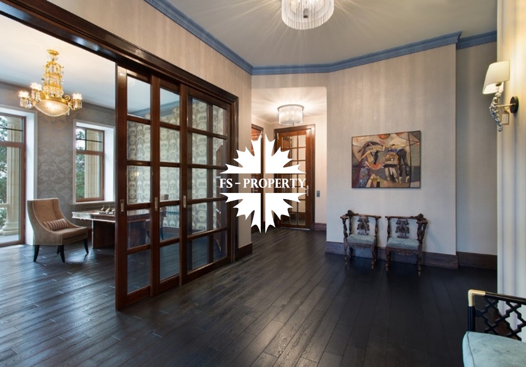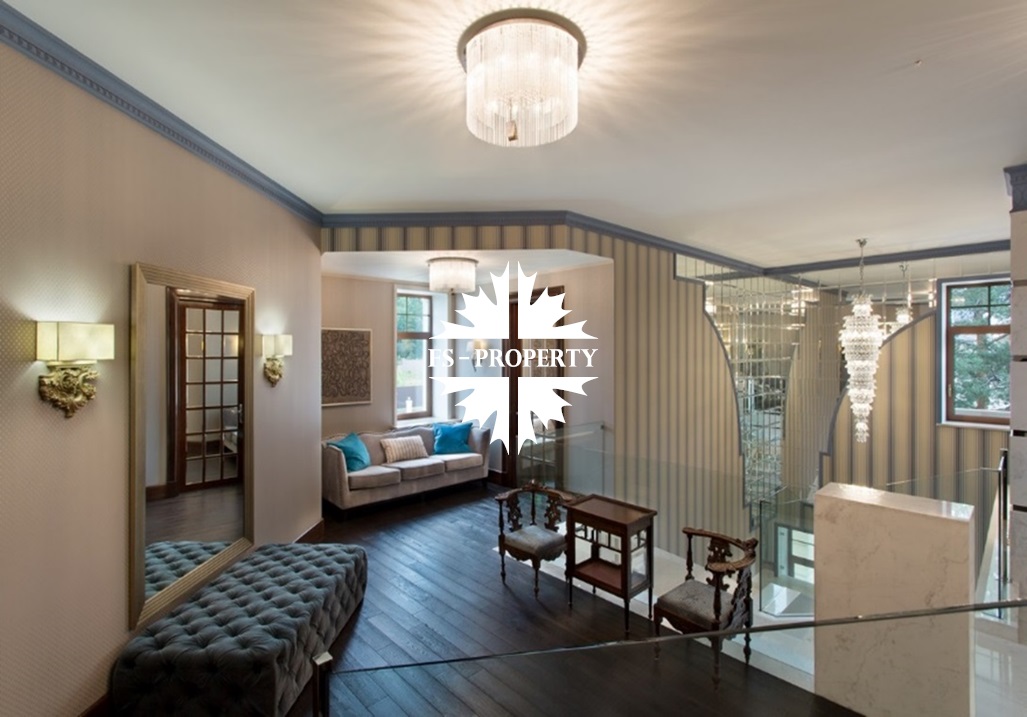 Загородная усадьба в охраняемом поселке «Архангельское». Дом готов к проживанию, полностью меблирован. Оборудован пассажирским лифтом. На территории участка выполнен ландшафтный дизайн.