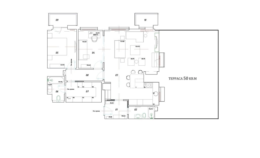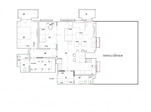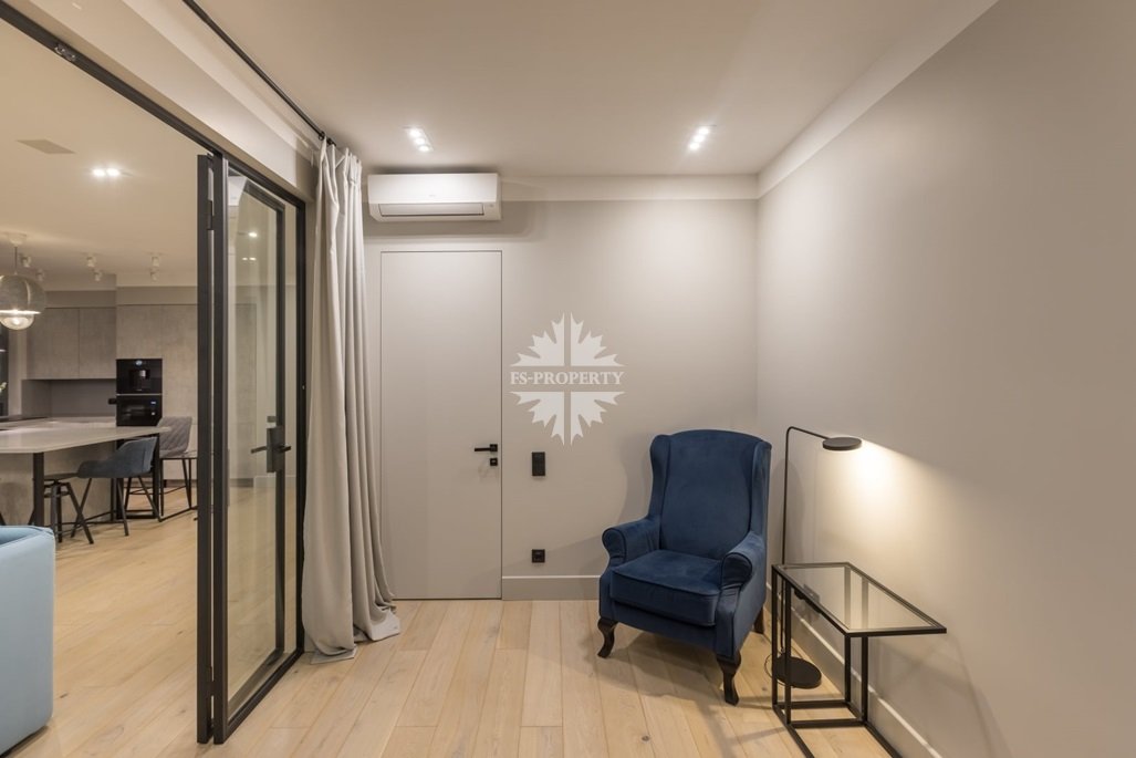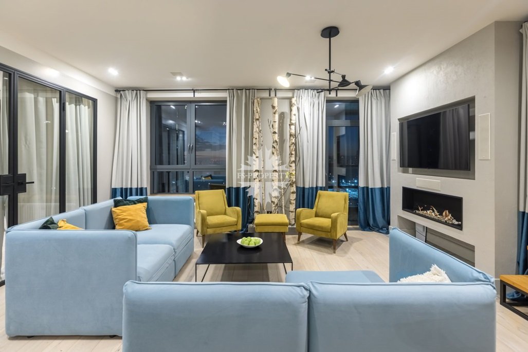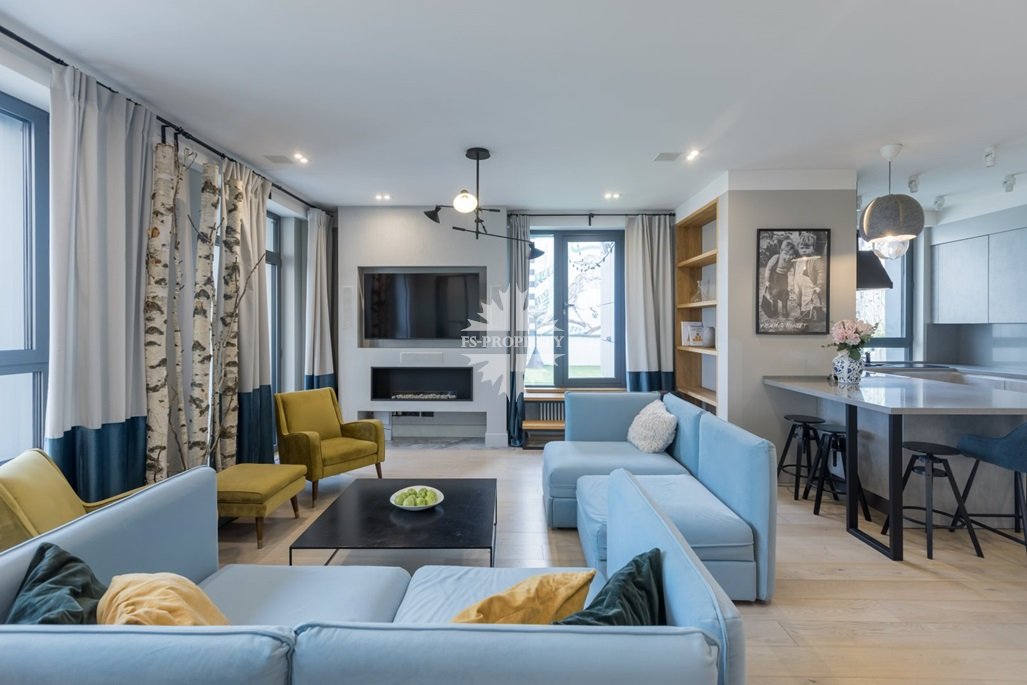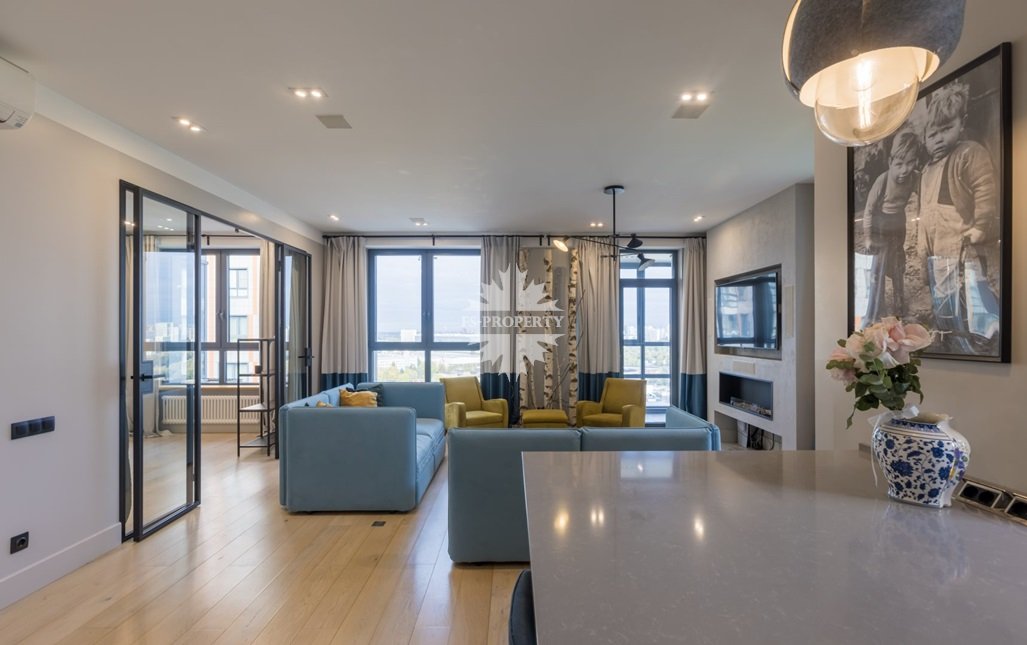 Функциональная планировка апартамента: кухня-столовая, гостиная, мастер-спальня, вместительная гардеробная, детская спальня/кабинет, 2 больших санузла, прихожая, открытая благоустроенная терраса.