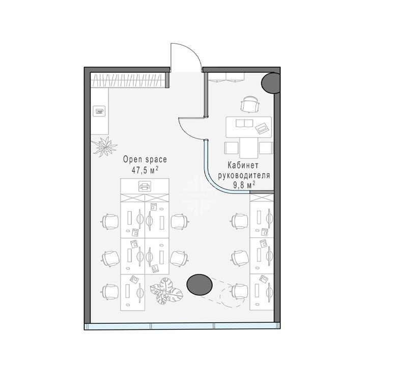 Свободная планировка и минимальное количество несущих конструкций позволяют максимально эффективно зонировать пространство. Панорамное остекление обеспечивает максимальное количество естественного освещения в дневное время и динамичный вид на город в вечернее.