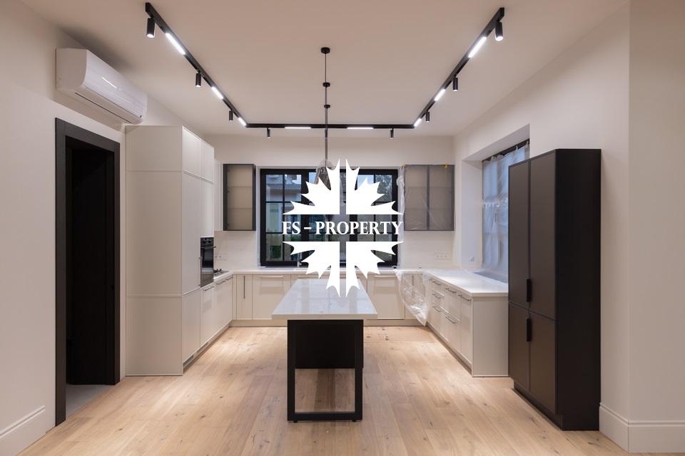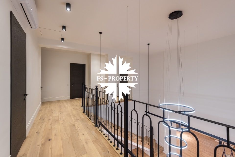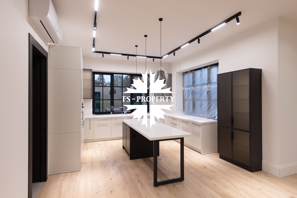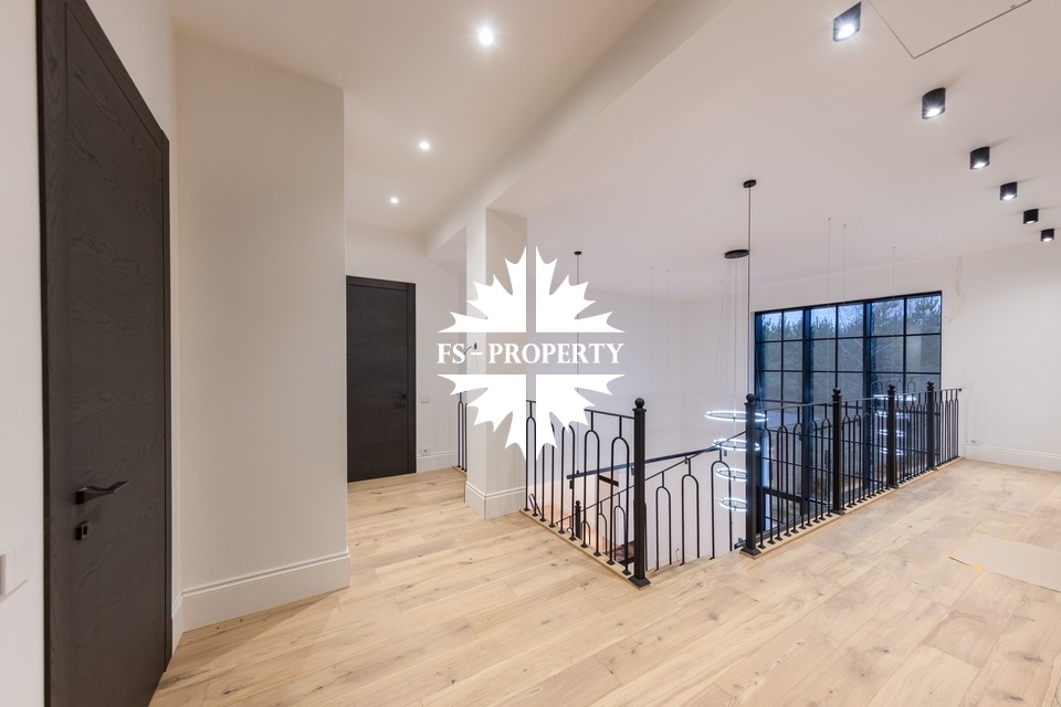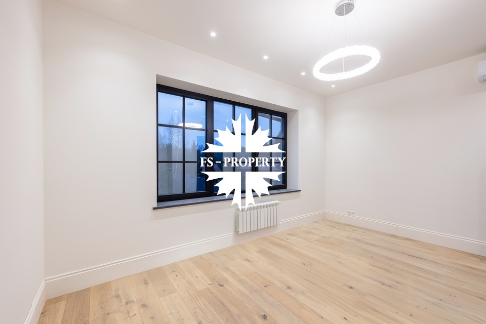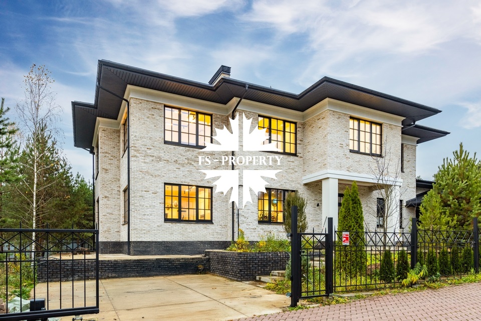 Предлагается к продаже новый элегантный дом с ремонтом без мебели в коттеджном поселке «Европа 1» с изысканной отделкой и премиальным оснащением. Здание построено из благородного бельгийского кирпича, установлены высококачественные окна Reynaulds. В доме предусмотрен просторный зал с высокими потолками 6,4 метра, спальни с потолками 3,2 метра. Интерьер дополнен роскошным немецким камином и кухней от Giulia Novars. Бытовая техника представлена брендами Asko и Liebherr. Для персонала предусмотрена отдельная квартира со спальней и собственным входом. Дом сочетает в себе комфорт, функциональность и премиальное качество исполнения.