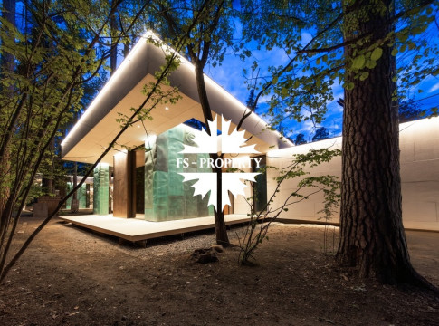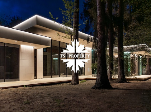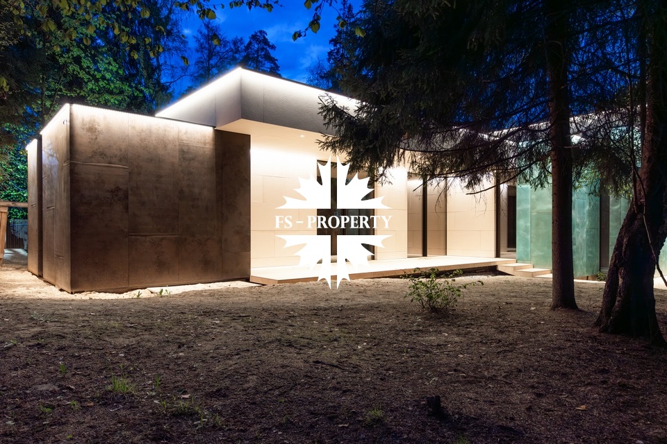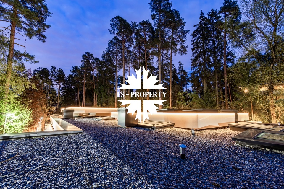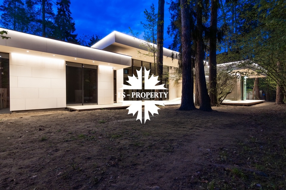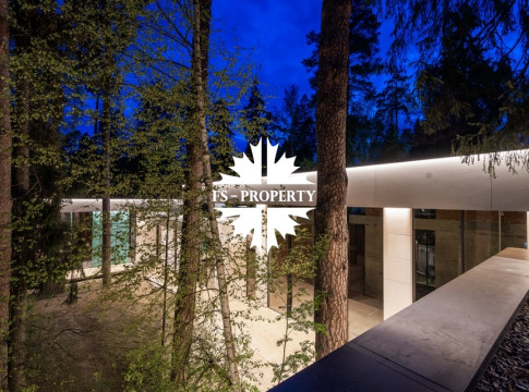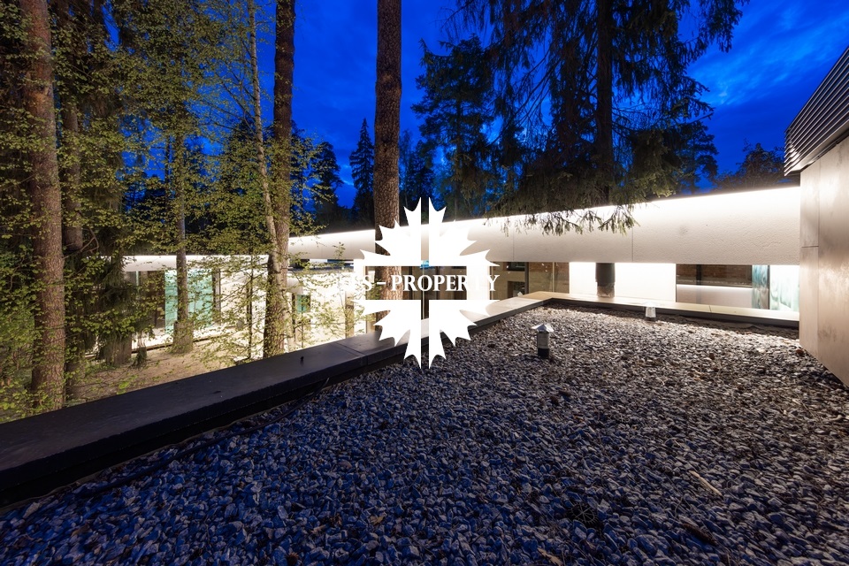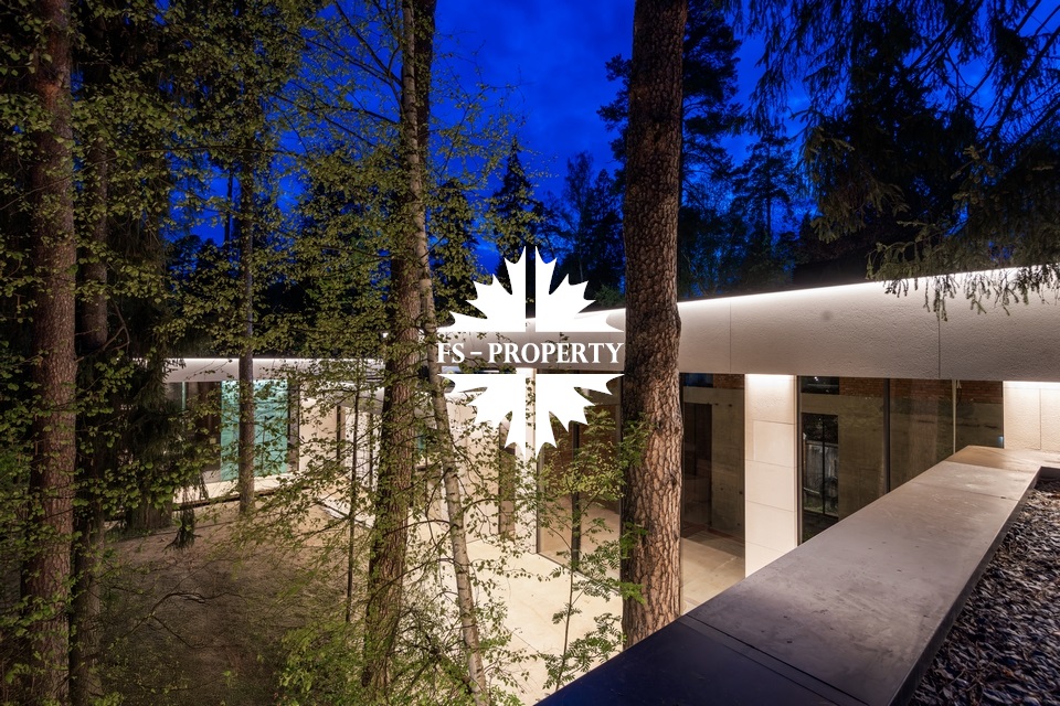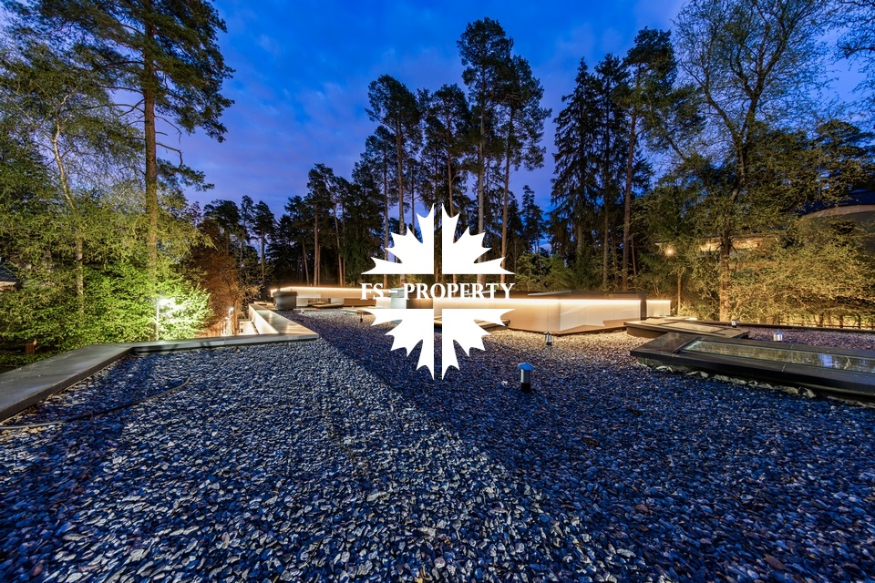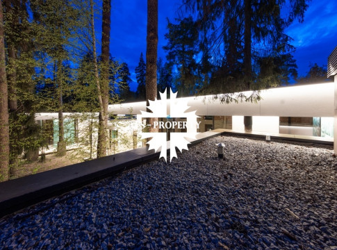 Уникальный дом 843 м² на участке в 30 соток в посёлке Жуковка-3 в 8 км от МКАД по Рублево-Успенскому шоссе. Этот проект — авторская работа Александры Фёдоровой, признанного мастера современной архитектуры.