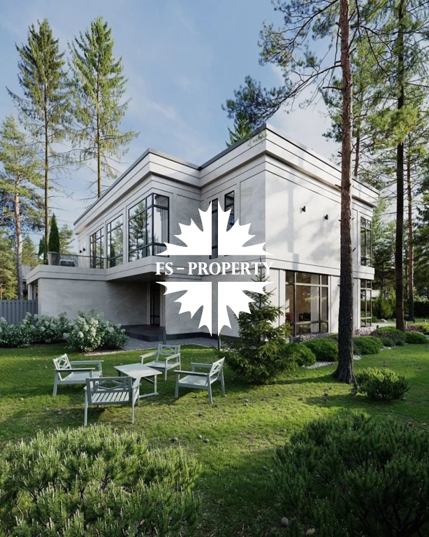 Новый дом с отделкой White Box в охраняемом поселке Лесные Зори в окружении хвойного леса.