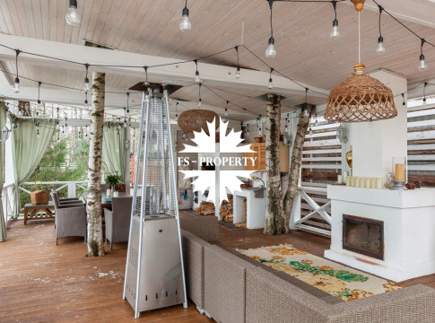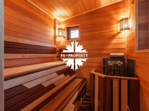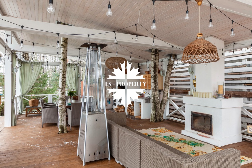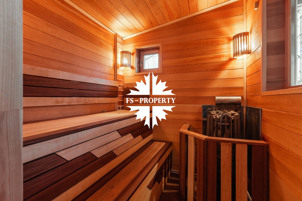 На участке расположены: большая беседка с камином и печью, гостевой дом со спа блоком- русская баня, финская сауна и купель.
