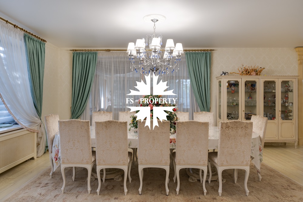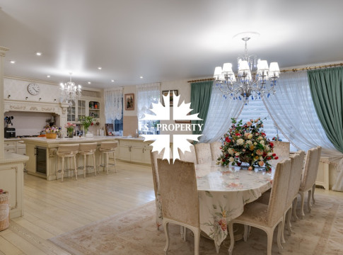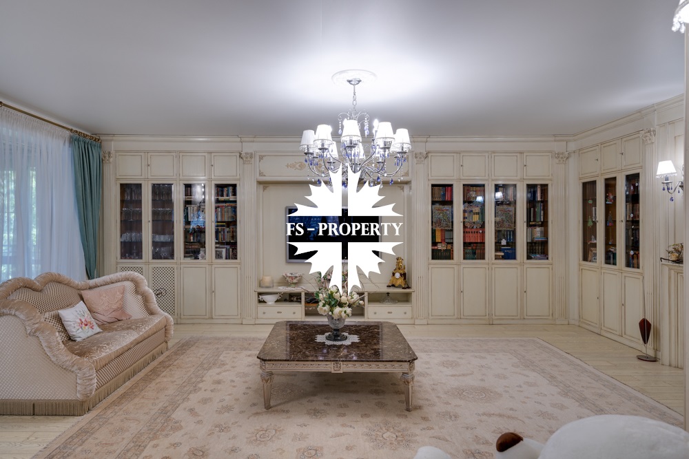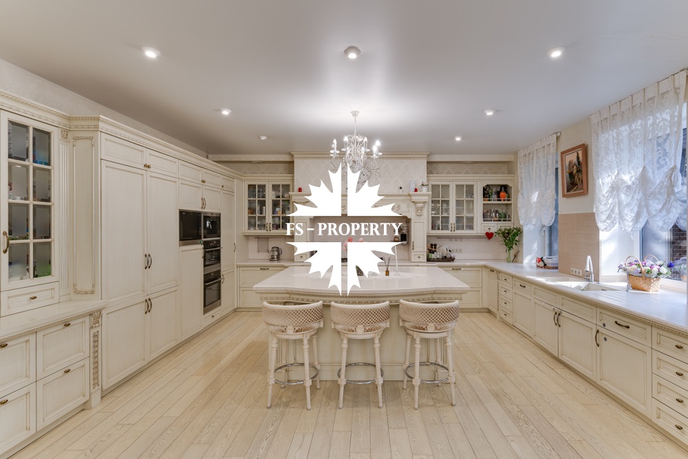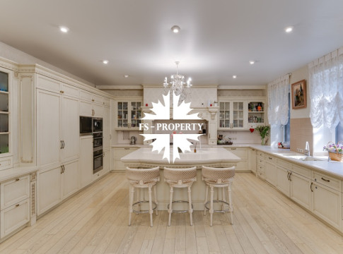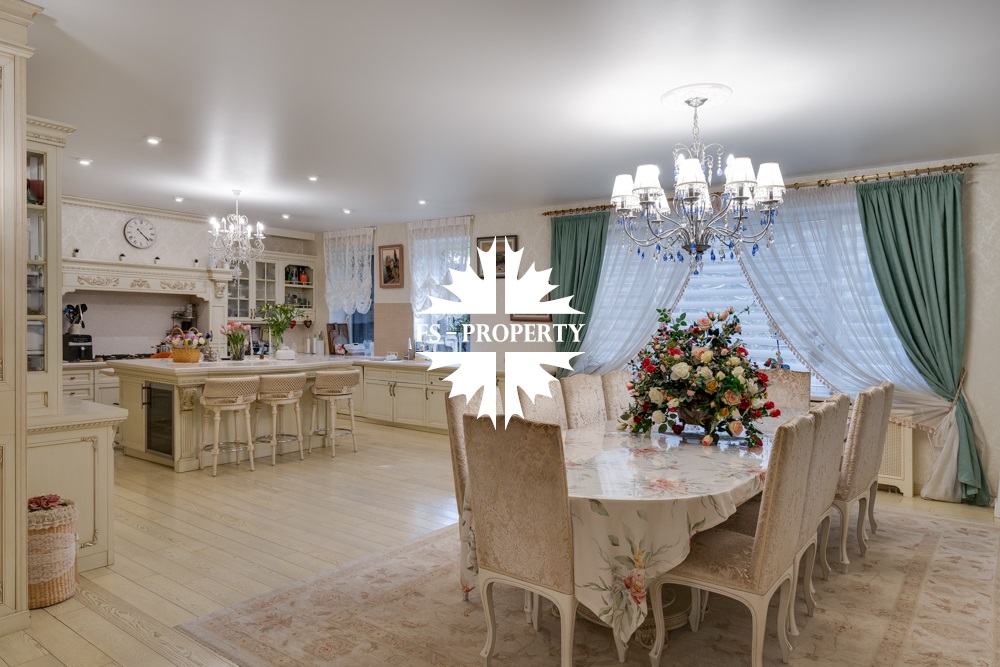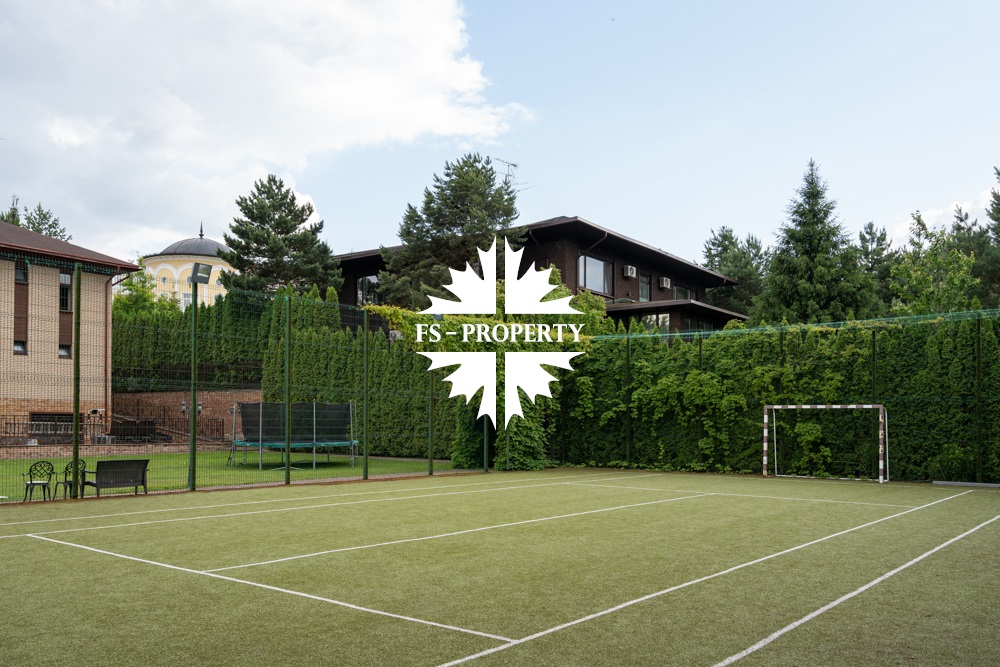 Предлагается к продаже Дом «У Малевича» с дорогим качественным ремонтом в КП 10 Ярдов (МП Новый дом) всего в 5 км от МКАД по Рублево-Успенскому шоссе. Ухоженный ровный участок правильной формы с автополивом. 1000 м2, 22 соток, гараж 2 м/м, навес 2 м/м, парковка 8 м/м, квартира для водителя, 5 спален со своими гардеробными и санузлами, 7 санузлов, 2 кухни, баня, хамам, джакузи, бильярдная, спортзал, кабинет, холодильник для шуб и многое другое.