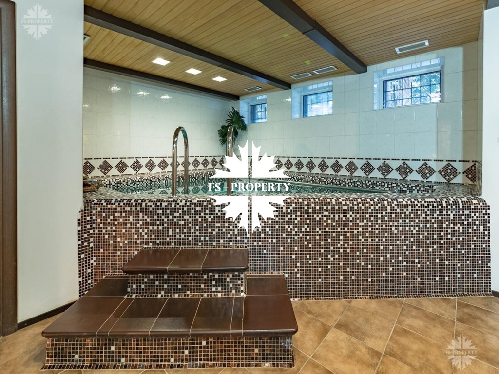 Цокольный этаж: спа-зона с бассейном, сауна, массажный кабинет, санузел с душевой, комната отдыха, бильярд, спортзал с солярием, прачечная, гардероб, кладовая, котельная.