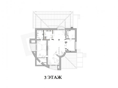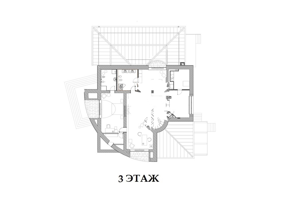 На третьем этаже предусмотрено пространство для гостей с отдельными спальнями, ванными комнатами и гардеробными. Также на этом этаже расположены бытовые помещения (прачечная и гладильная комнаты).