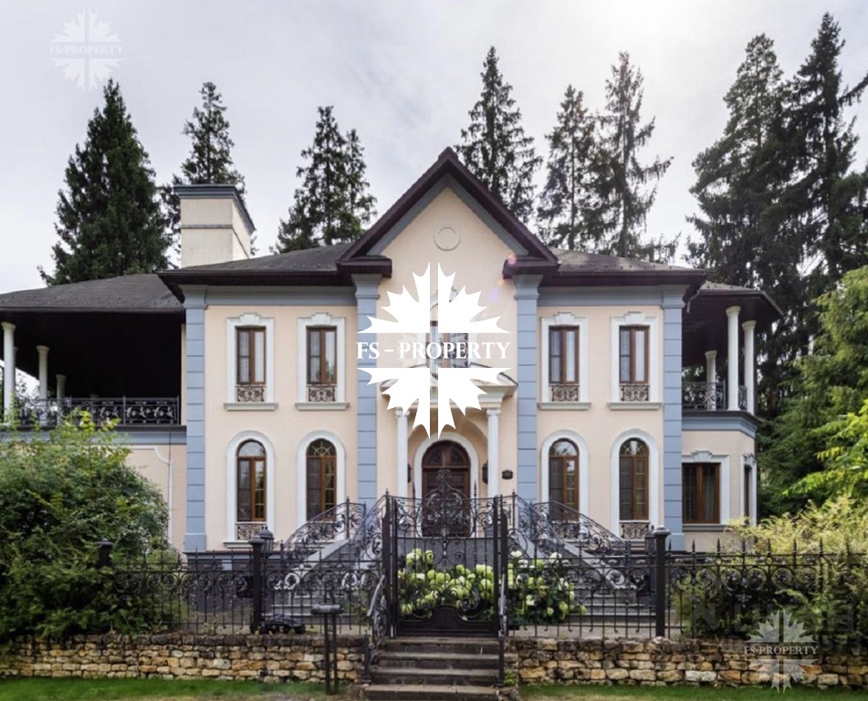 Особняк в поселке премиум-класса Николино, 23 км от МКАД по Рублево-Успенскому шоссе. Выполнен в классическом стиле с использованием натурального камня, дерева ценных пород. Просторный участок с красивым ландшафтным дизайном, газоном, лесными деревьями.