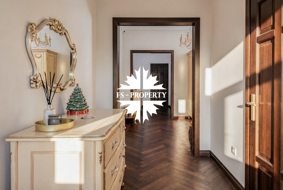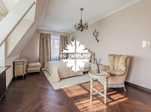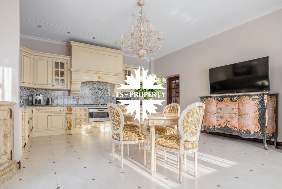 Загородный дом в классическом стиле площадью 611 кв.м в охраняемом поселке "Весна" - всего в 16 км от МКАД по Рублево-Успенскому шоссе. Внутренняя отделка выполнена исключительно итальянскими материалами наивысшего качества. Основой интерьера стали дубовая лестница и паркет, массивные вишнёвые двери и бронированные окна из массива дуба, создающие атмосферу благородства и долговечности. Каждая деталь интерьера подобрана с безупречным вкусом и представляет лучшие итальянские и мировые бренды. Кухня оснащена гарнитуром Francesco Molon и техникой Gaggenau. Мебель в помещениях — от Andrea Fanfani, Duresta, Provasi, Savio Fermino, Francesco Molon и Zanaboni. Сантехника Devon & Devon, осветительные приборы Mechini, Chelini, Grifoni и текстиль Loris Zanca дополняют дом. Особый ширм придают ковры: на первом этаже — иранский шёлк ручной работы, на втором — Ralph Lauren.