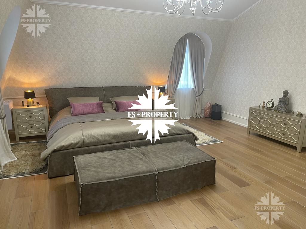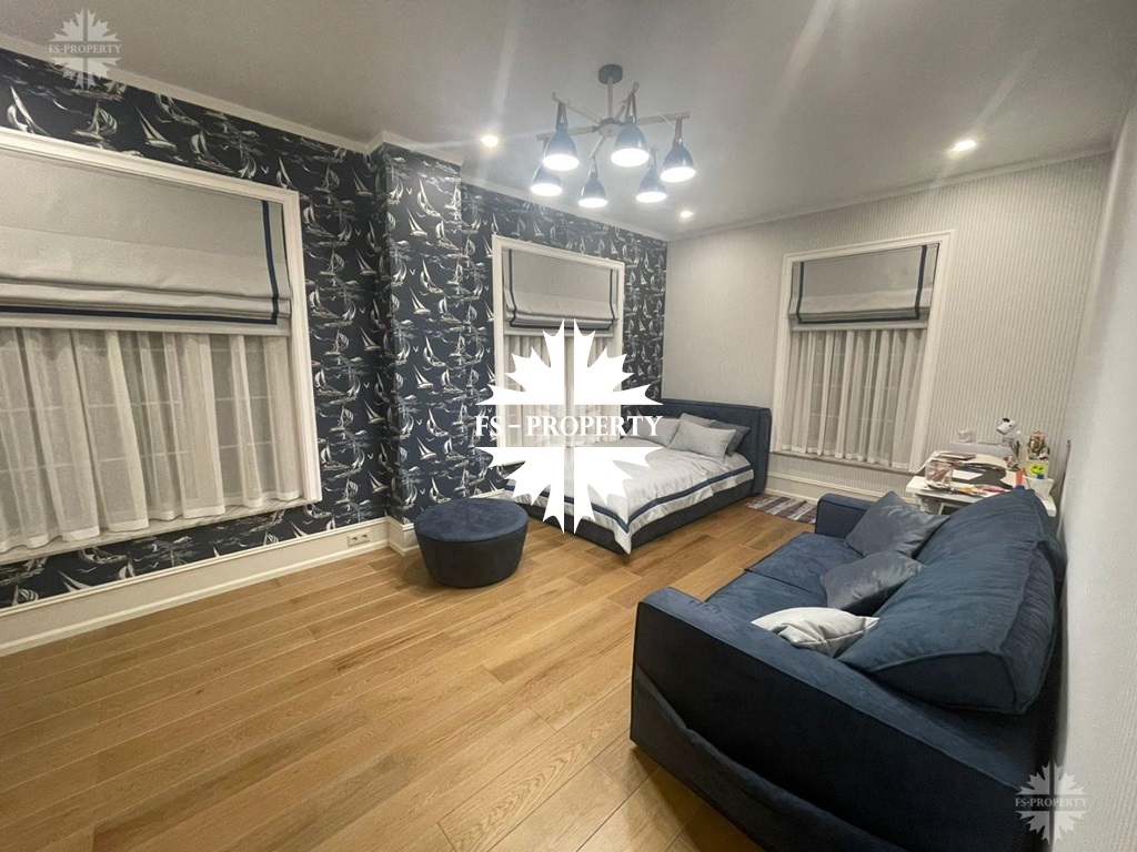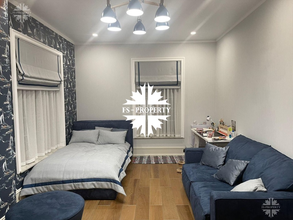 Дом 270 кв.м с участком 4 сотки, строили под себя. Фасад дома облицован кирпичом и мрамором. Качественная внутренняя отделка с применением дорогих натуральны материалов. Санузлы, хамам и камин облицованы натуральным мрамором. Так же весь пол и лестница в доме, кроме спален и гардеробных облицован натуральным мрамором. Мебель Baxter. Дом полностью готов для проживания. Высота потолка 3,5 м. Все центральные коммуникации.