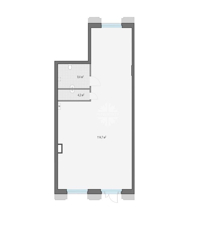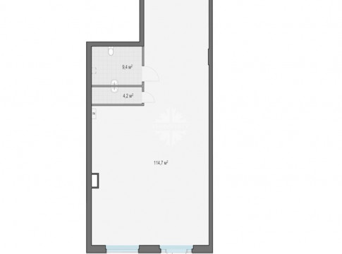 Высота потолка 6,1 м. На фасаде предусмотрено место под рекламную вывеску. Электрическая мощность 16,6 кВт.