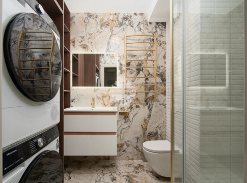 Планировочным решением предусмотрены: гостиная, кухня-столовая, мастер-спальня, санузел с душевой кабиной, лоджия.