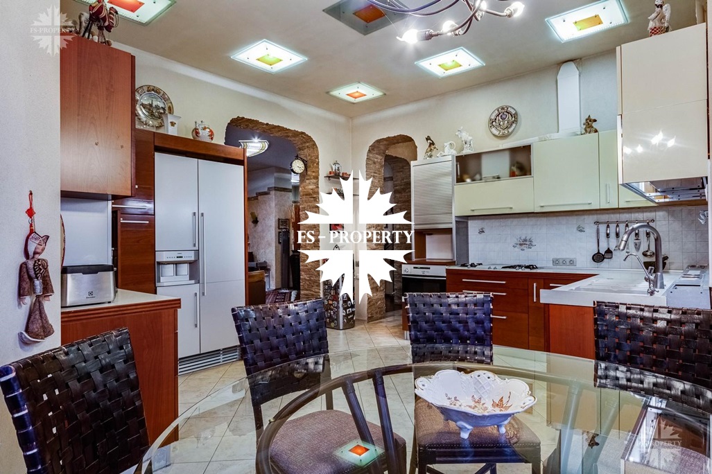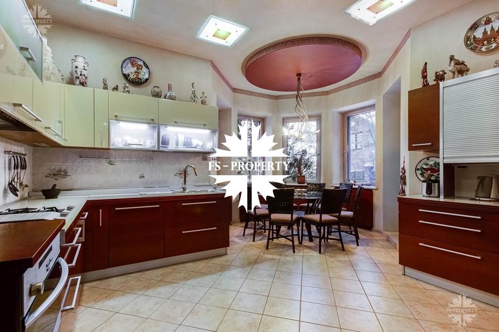 Общая площадь основного дома 440 кв.м. – 3 этажа и подвал из монолита. По БТИ жилая площадь 311 кв.м. Капитальный ремонт (замена) всех инженерных коммуникаций была произведен три года назад. Радиаторы Zender. На 1-м этаже имеется открытая терраса площадью 15 кв.м. с выходом из кухни и гостиной.