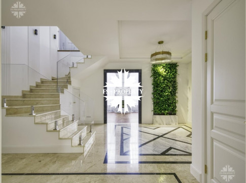 Стильный современный коттедж в респектабельном поселке Монтевиль. Предлагается к продаже с отделкой под ключ, без мебели. Площадка перед домом выложена брусчаткой, участок застелен газоном, проведен автополив.