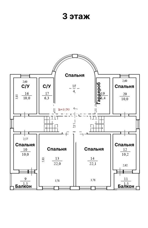 3 этаж: спальня, две спальни с балконом, Мастер - спальня с с/у, гардероб,с/у.