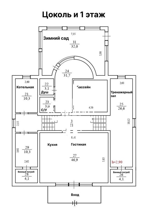 Цоколь: тренажерный зал, два винных погреба, душ, котельная.