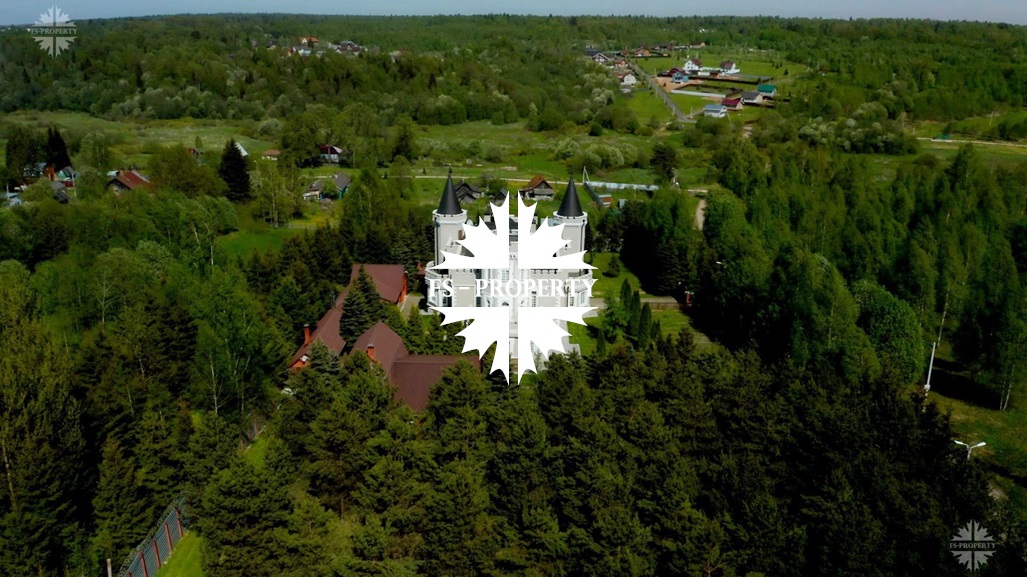 Новый коттедж в стиле Шотландского замка на участке 95 соток с собственным лесом.