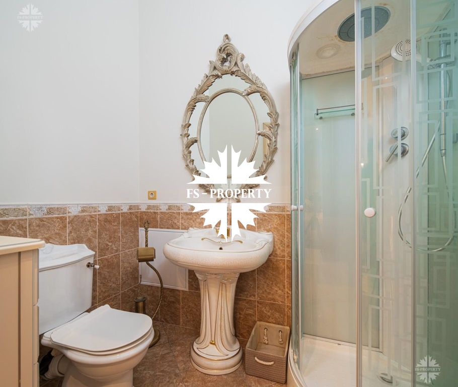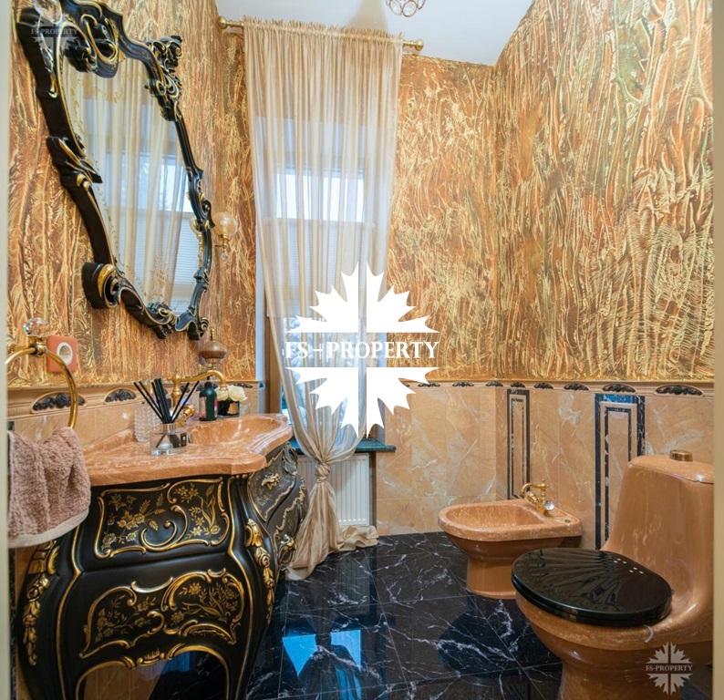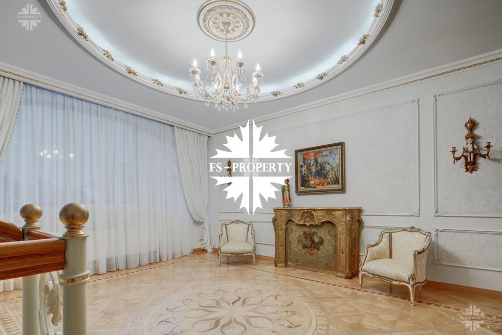 1 этаж: прекрасная гостиная с камином, кухня, столовая, санузел, постирочная, гардеробная, спальня с гардеробной и ванной, гараж на 2 м/м;