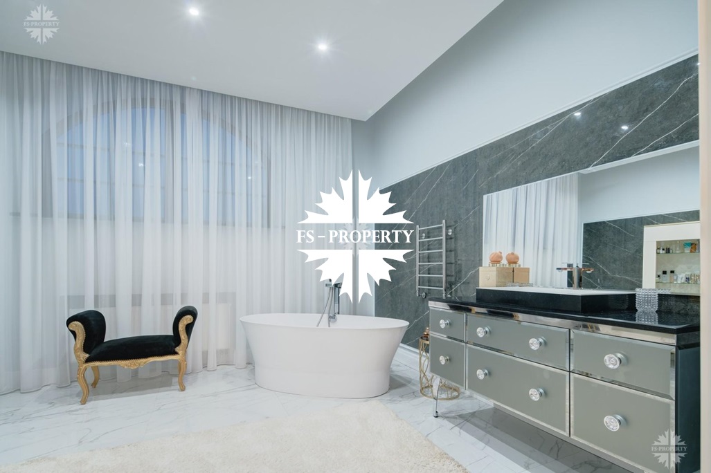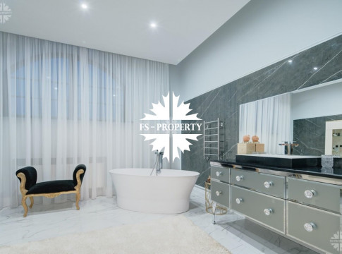 Коттедж с 6-ю спальнями, панорамными окнами и высокими потолками, полностью меблирован и оборудован техникой, готов к проживанию.