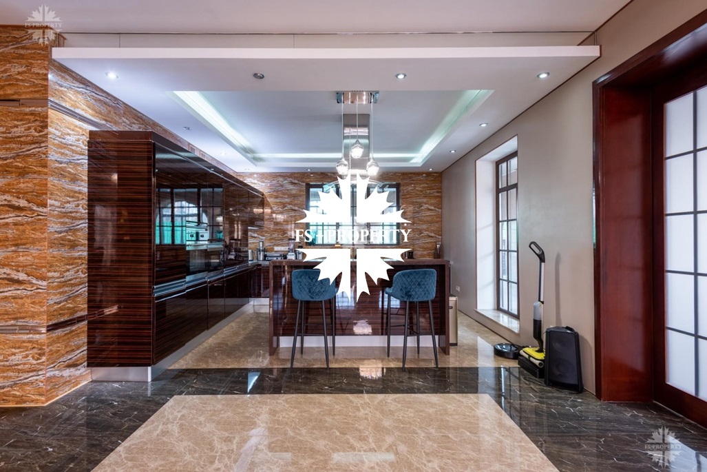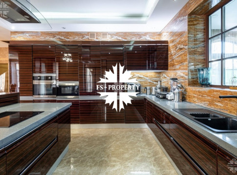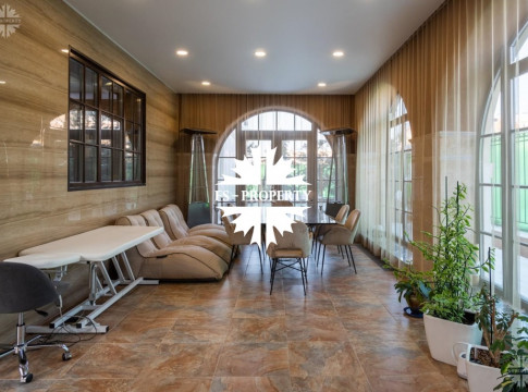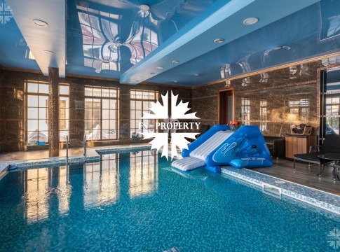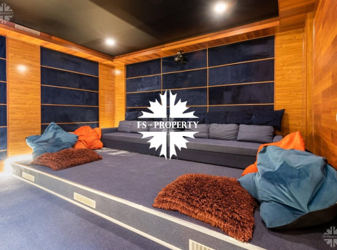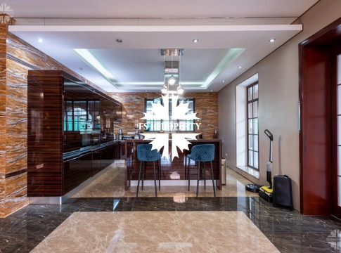 Первый этаж: гостиная с камином и выходом на террасу, кухня-столовая, хозяйский блок с гардеробными и ванными комнатами, постирочная, зона спа (сауна, душевая, с/у, бассейн с выходом на патио), с/у, кладовая, гараж на 2 м/м.