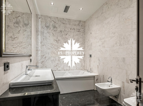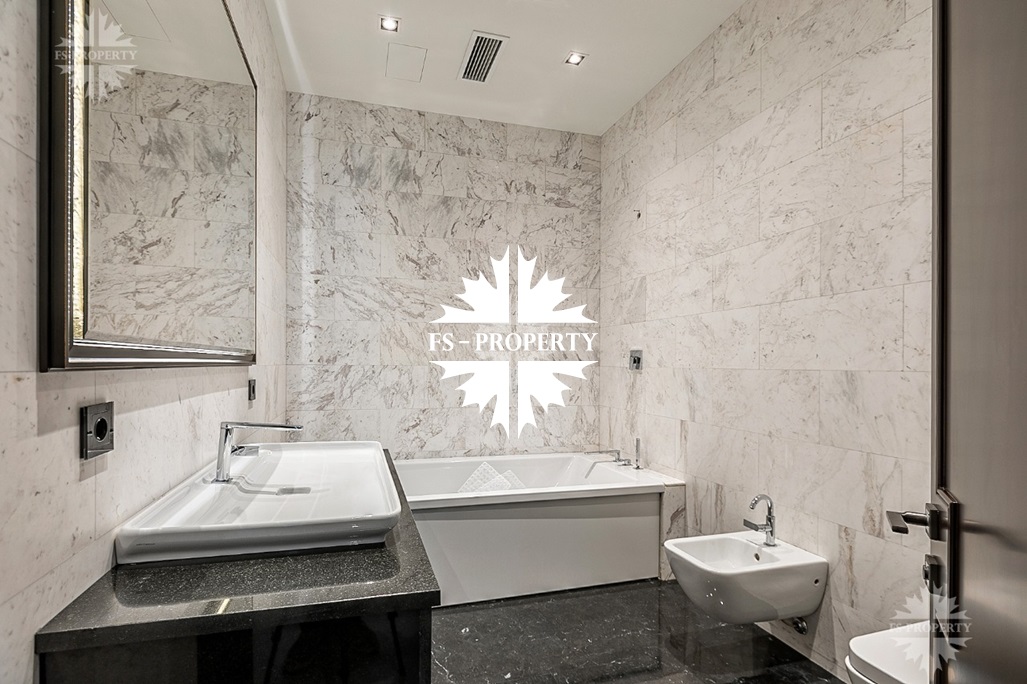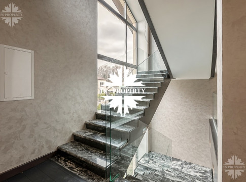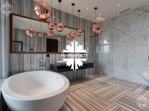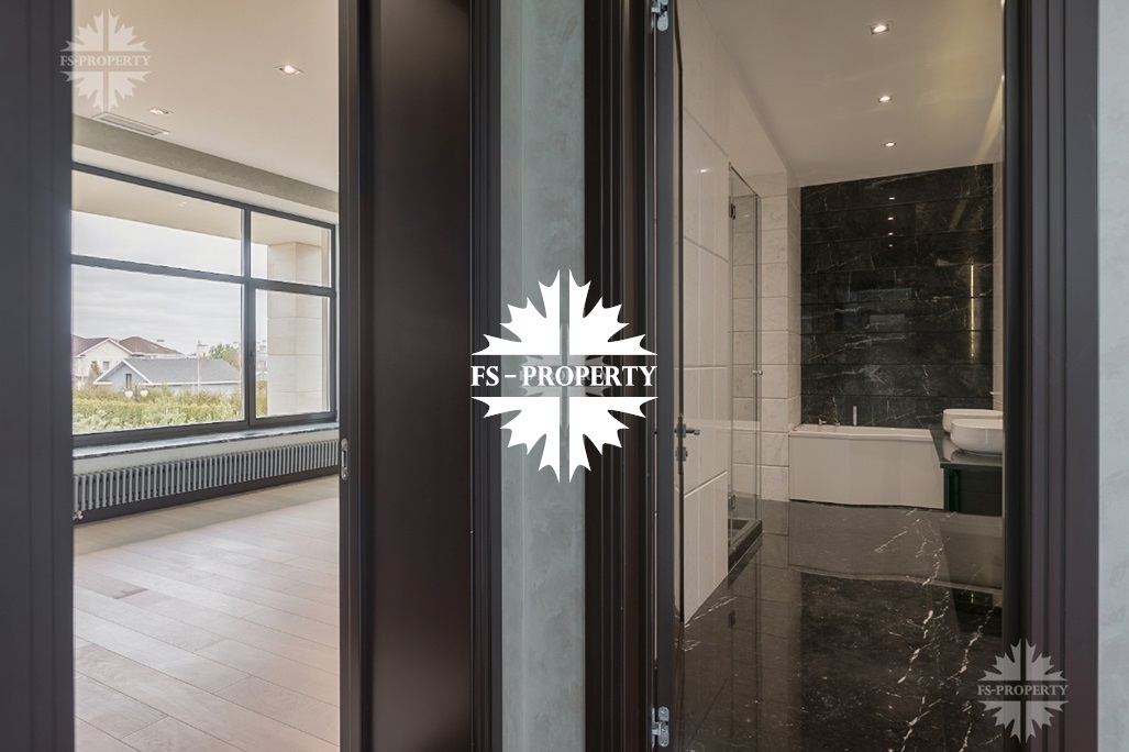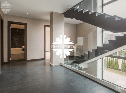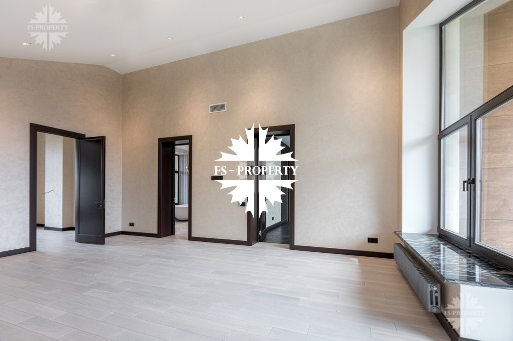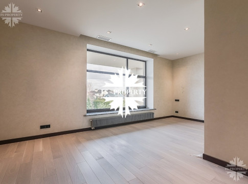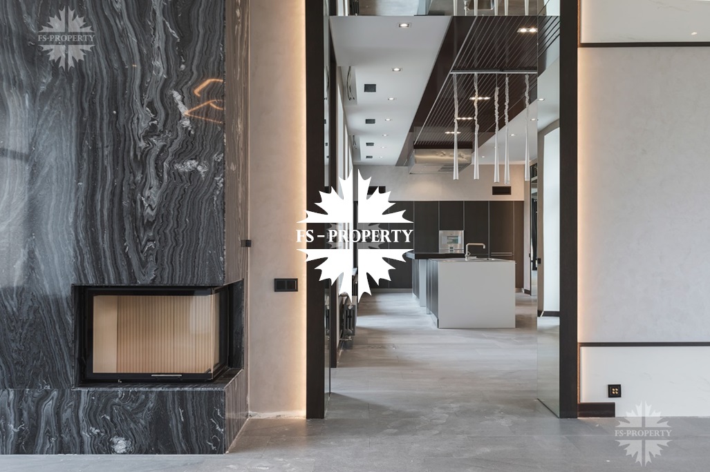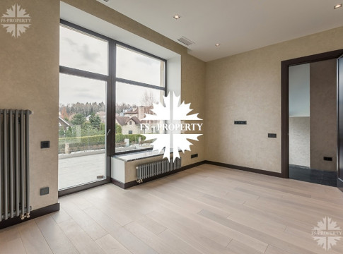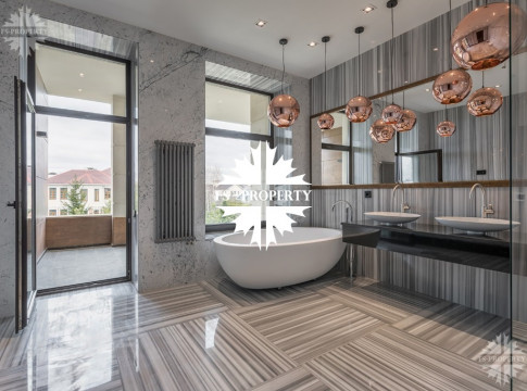 В доме – просторный холл, гостиная с камином, кухня, столовая, пять спален, четыре из них – с отдельными санузлами, терраса, гараж. Кухня bulthaup оборудована бытовой техникой Gaggenau, в ванных комнатах установлены ванны Teuco, смесители – Dornbracht. После завершения внутренней отделки в доме никто не жил.