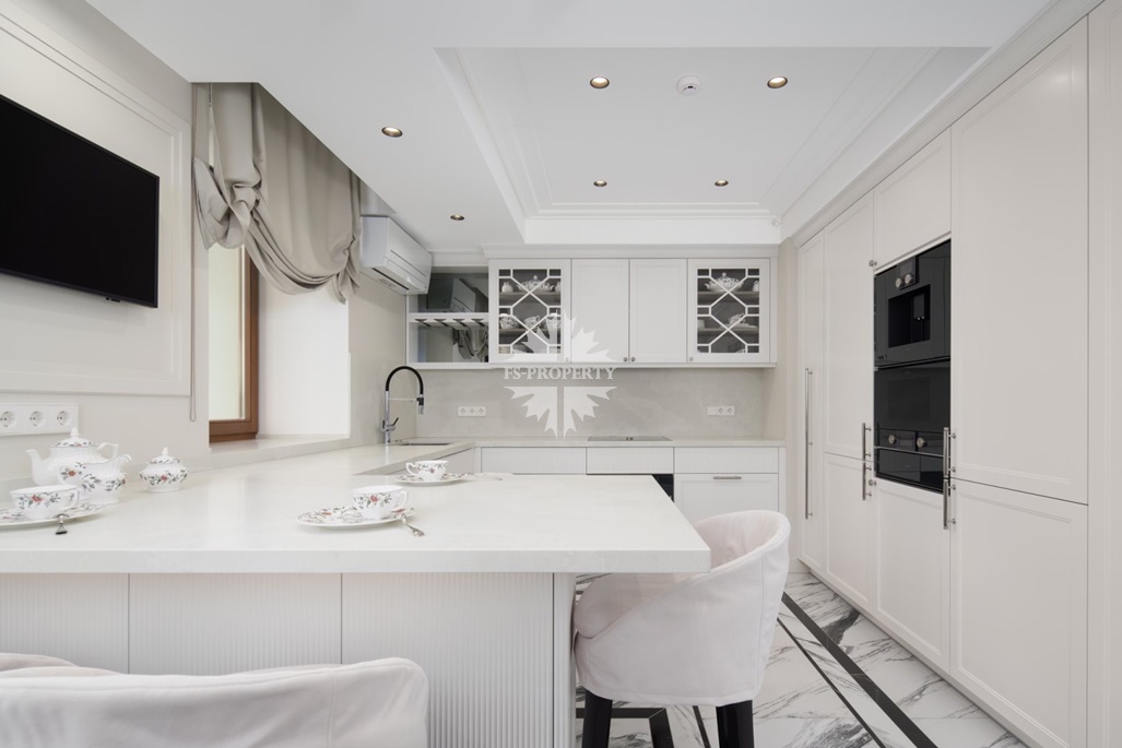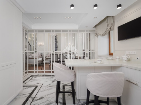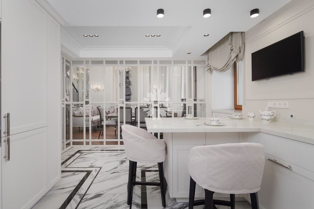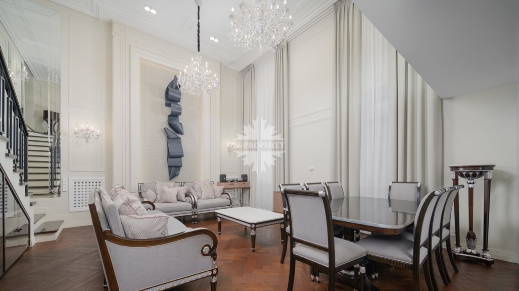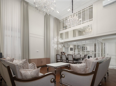 Двухуровневая квартира в классическом стиле с 4-мя спальнями. Отделка натуральными материалами. Мебель фабрик Francesco Molon, Angelo Cappellini.