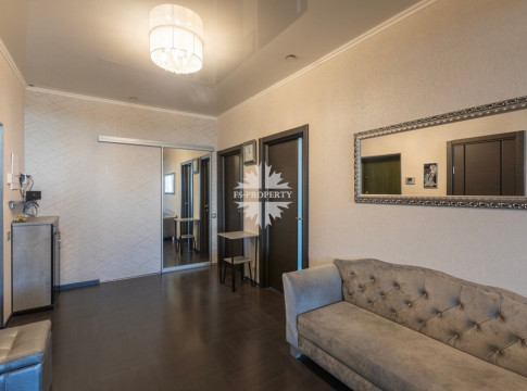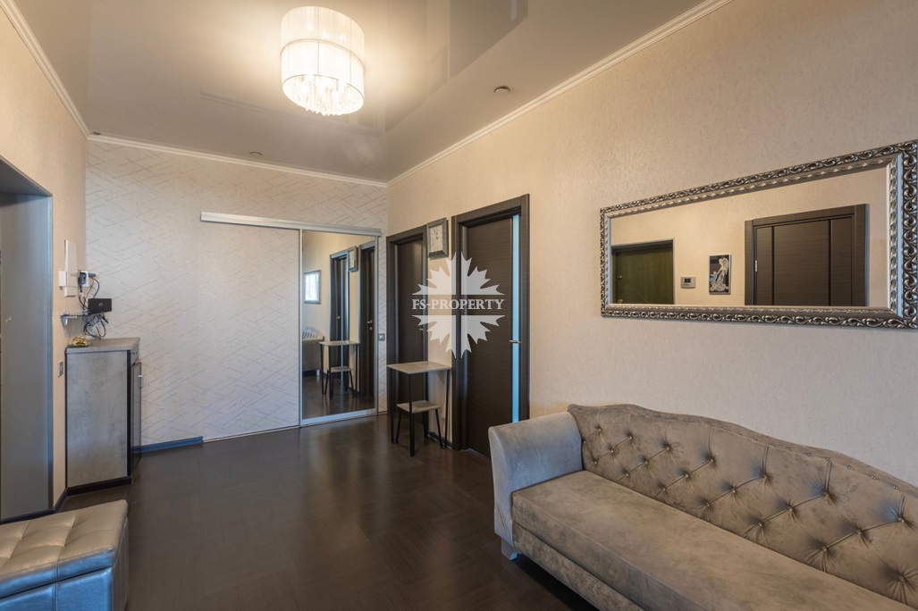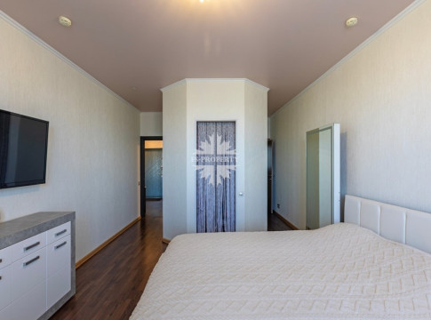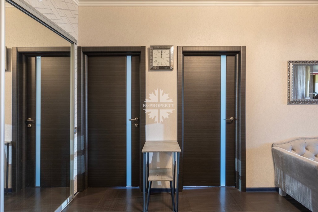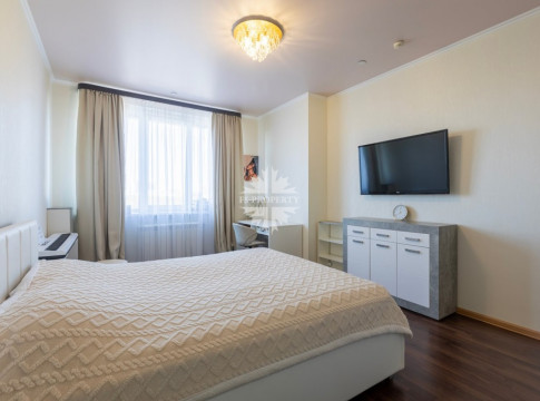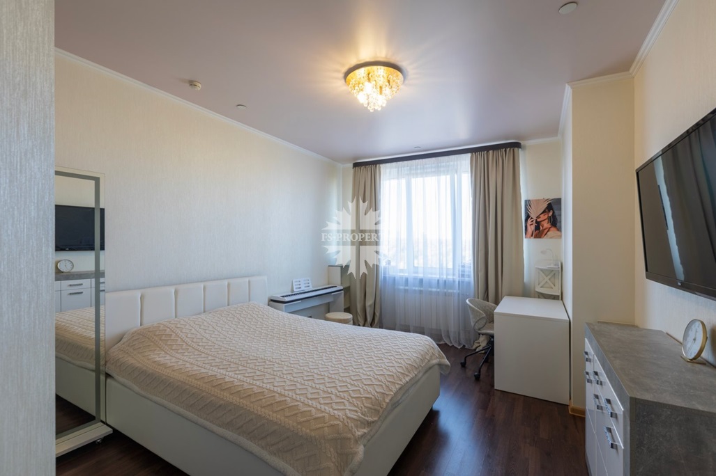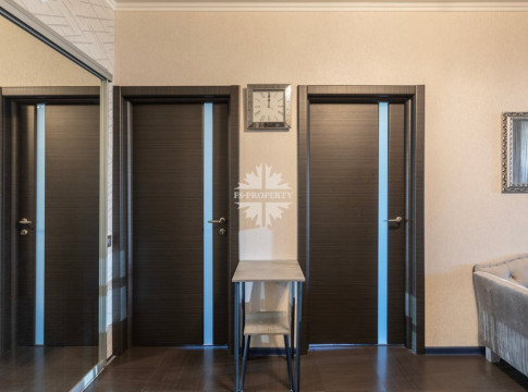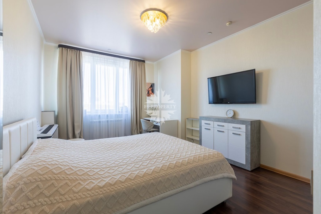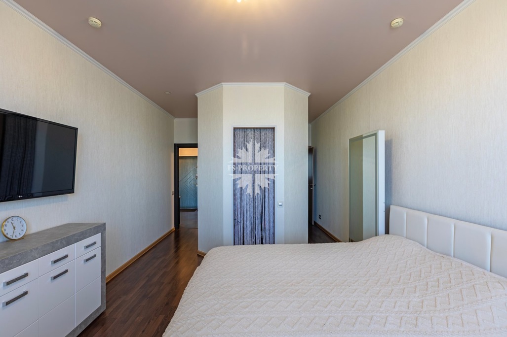 В квартире две спальни: просторная мастер-спальня с гардеробной и собственным санузлом, вторая спальня с просторной