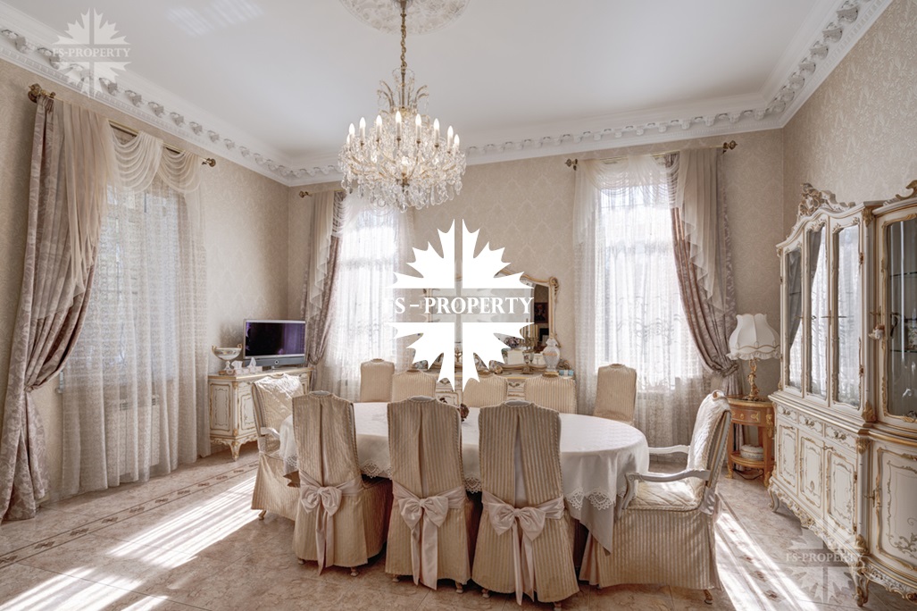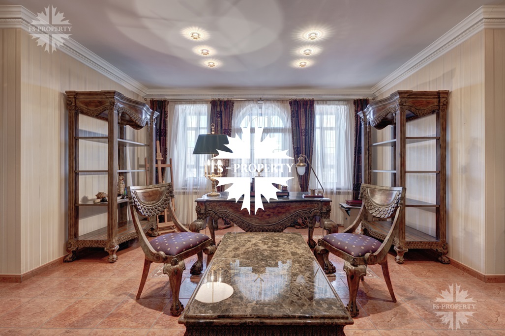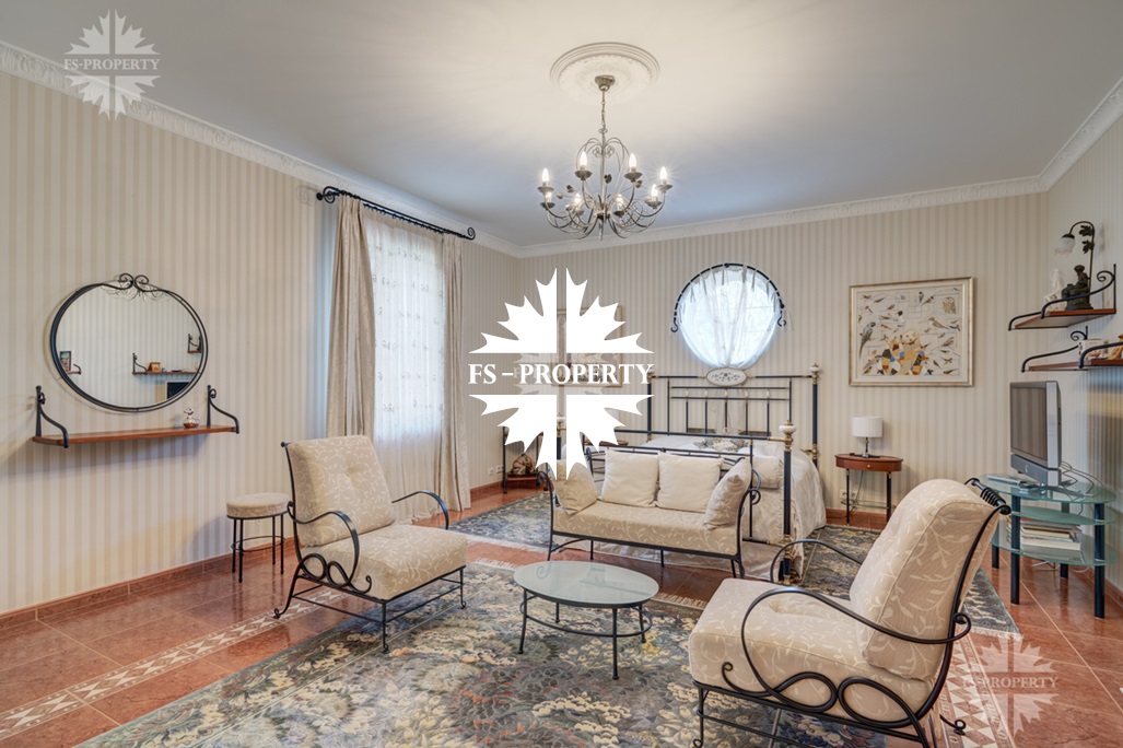 Коттедж отделан дорогими отделочными материалами, оборудован техникой. Дорогая итальянская мебель.