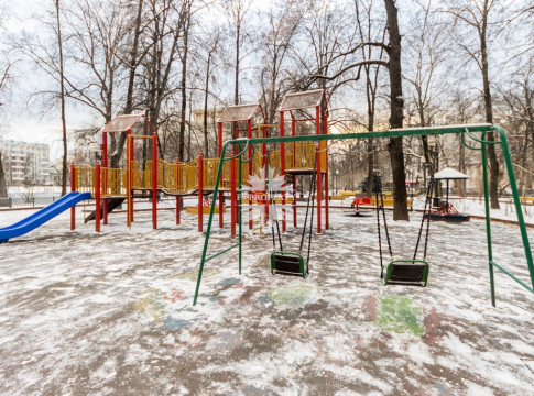 Дом с огороженной территорией, детской и спортивной площадками во дворе.