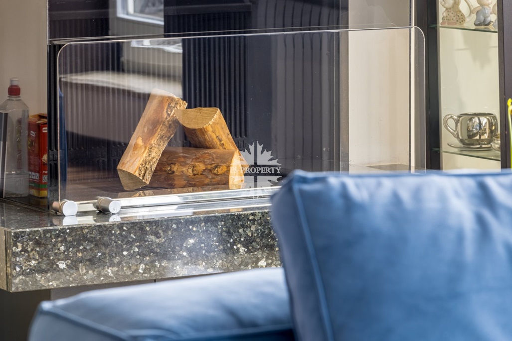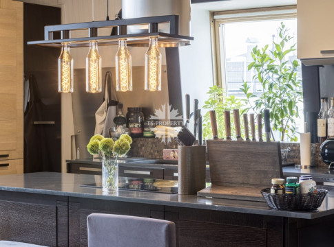 В квартире выполнена отделка в современном стиле, с использованием натуральных отделочных материалов.