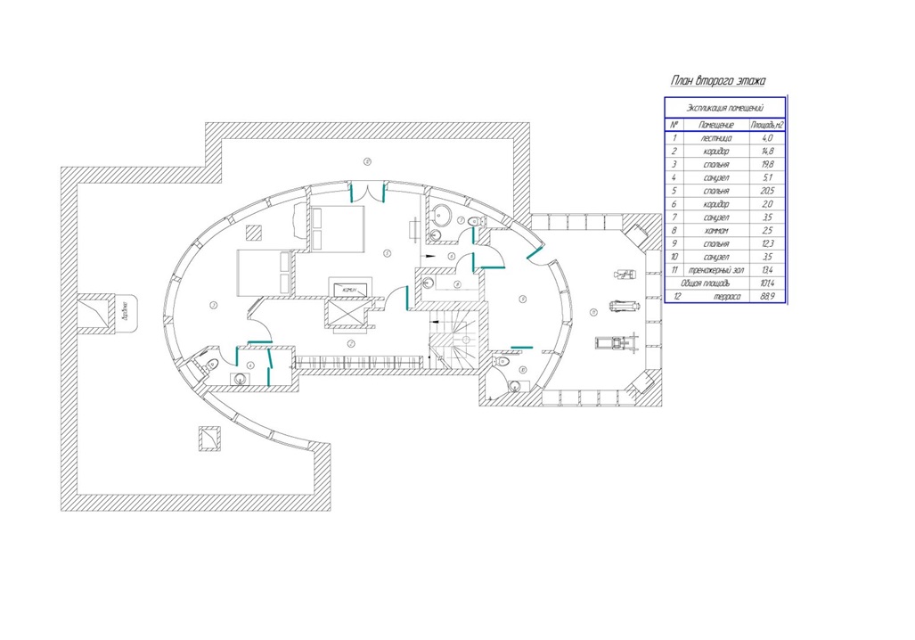 2 уровень - 100 кв.м. Здесь спланированы 3 спальни с панорамными окнами, со своими санузлами, тренажерный зал.