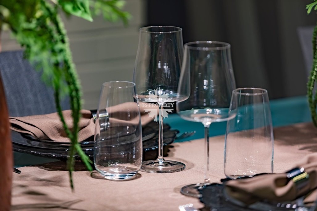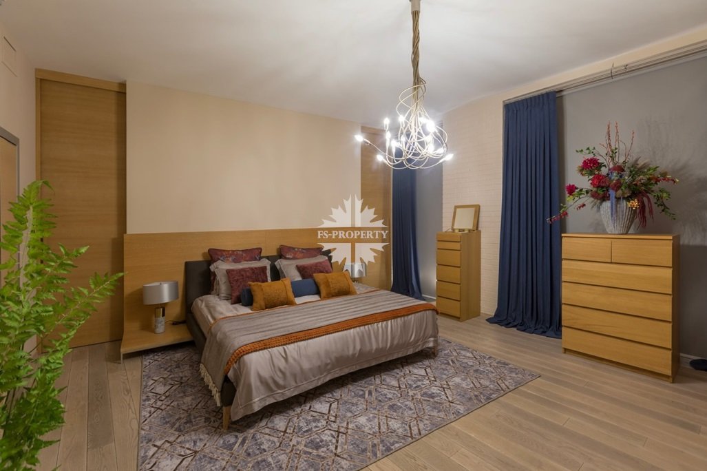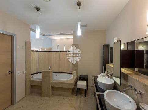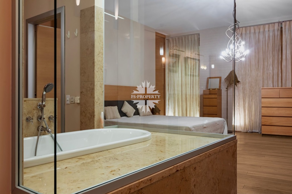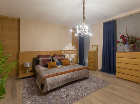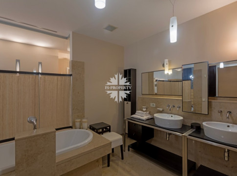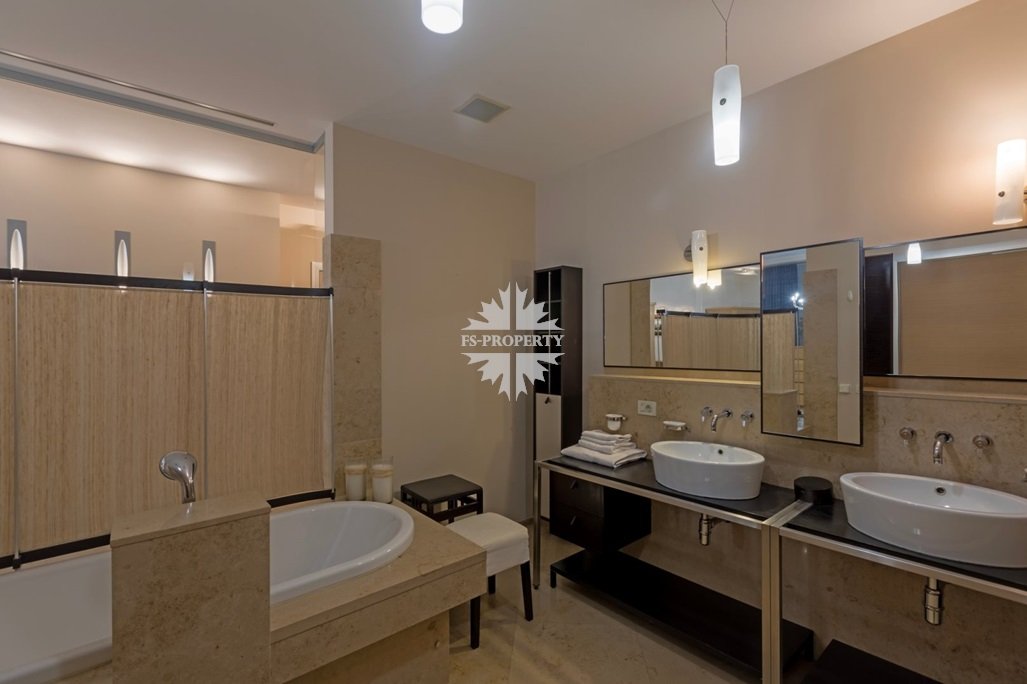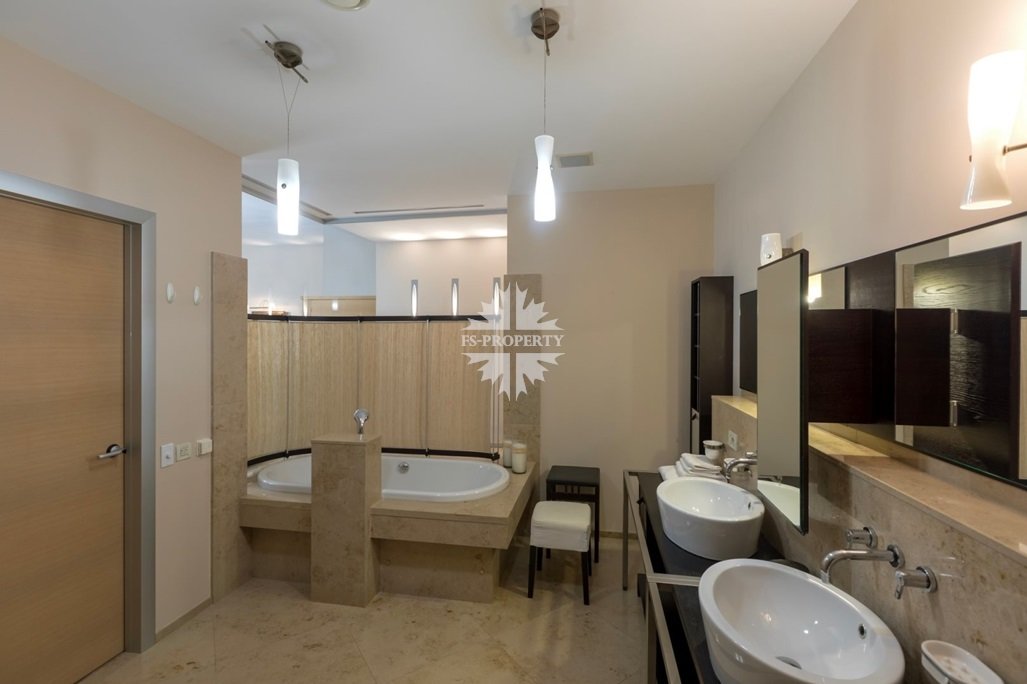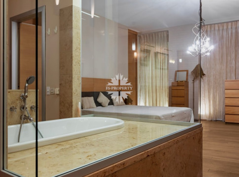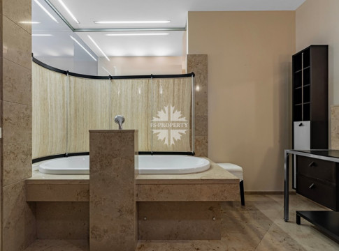 В отделке использованы дорогие материалы, в том числе массив дуба, мрамор.
