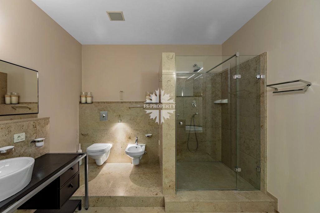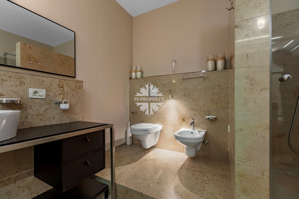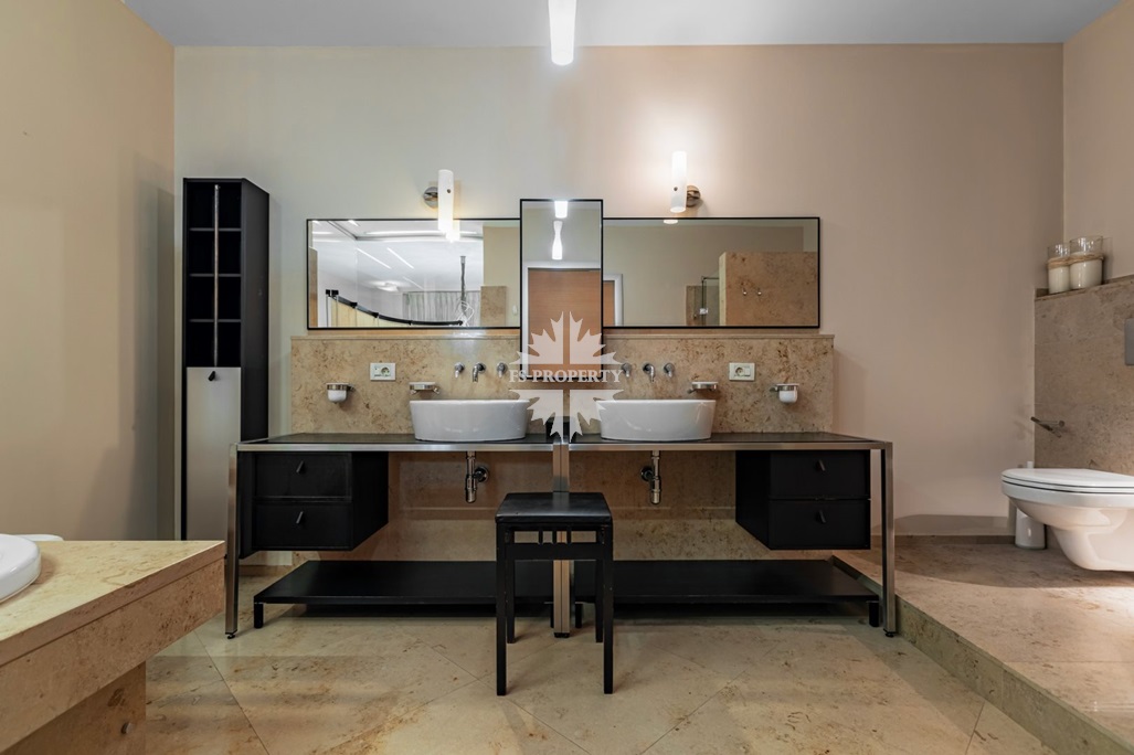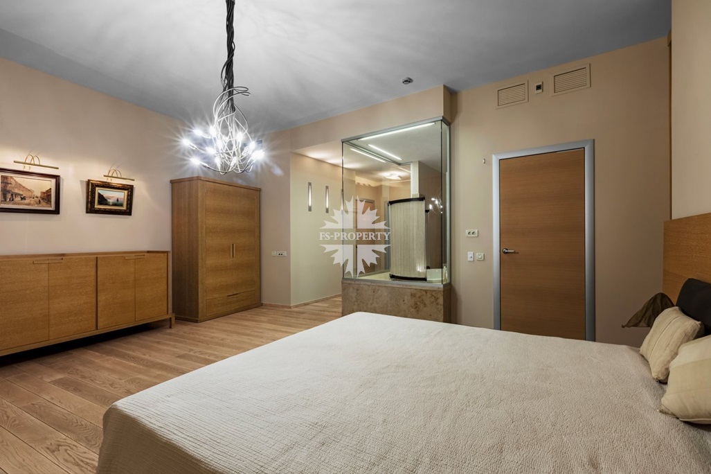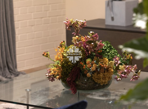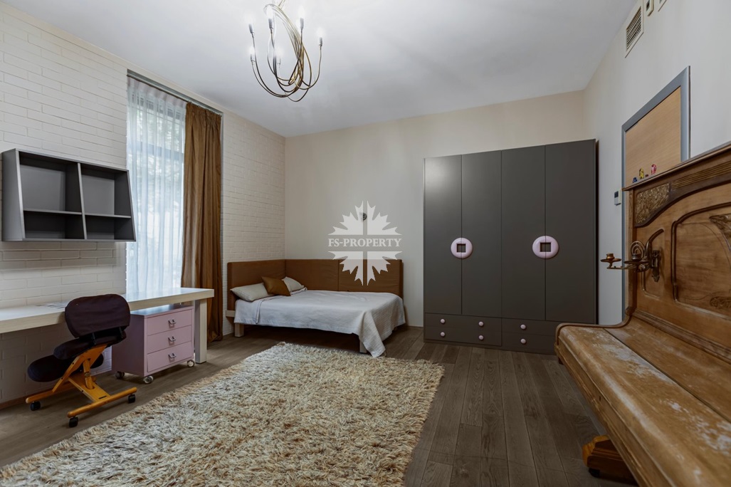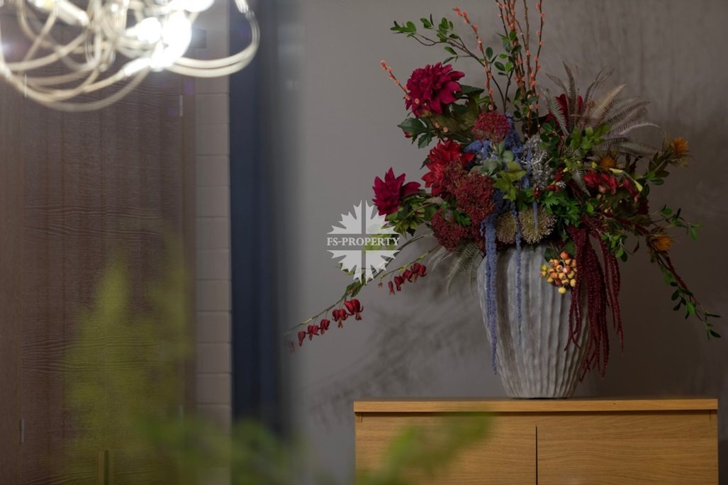 В отделке использованы дорогие материалы, в том числе массив дуба, мрамор.