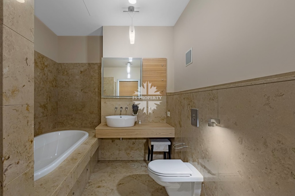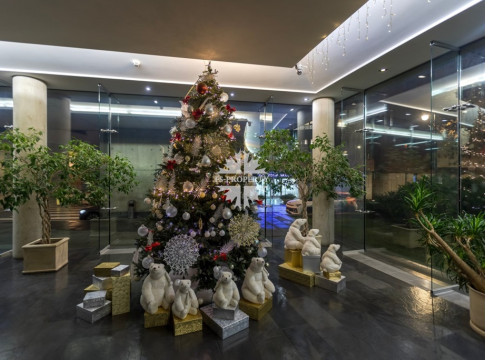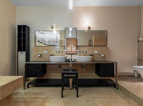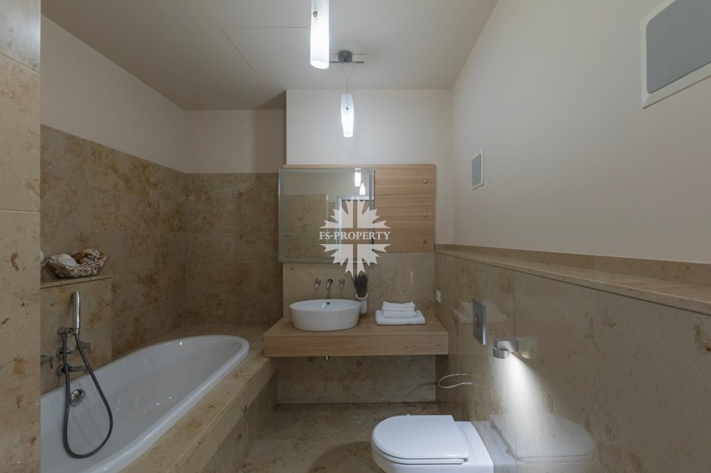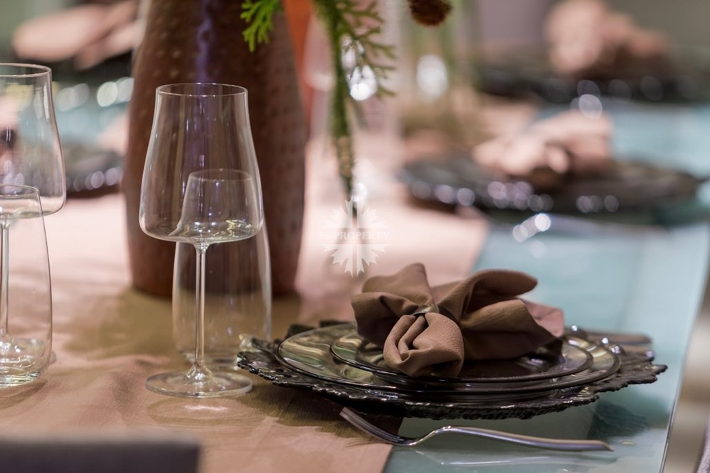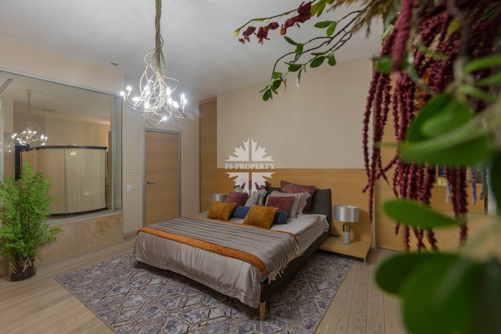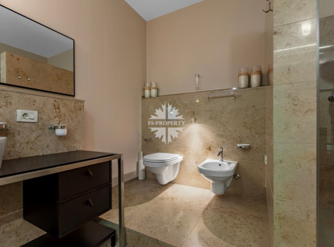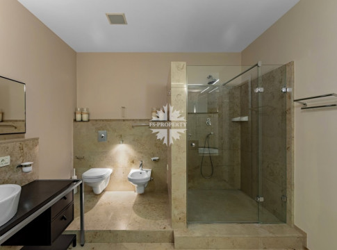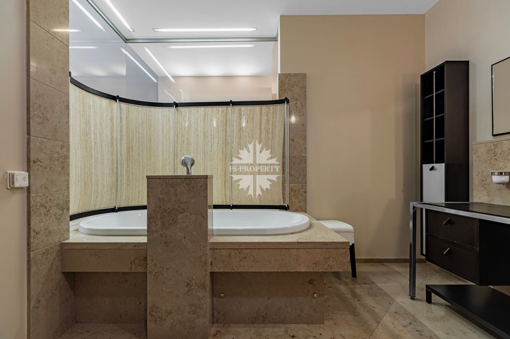 В отделке использованы дорогие материалы, в том числе массив дуба, мрамор.
