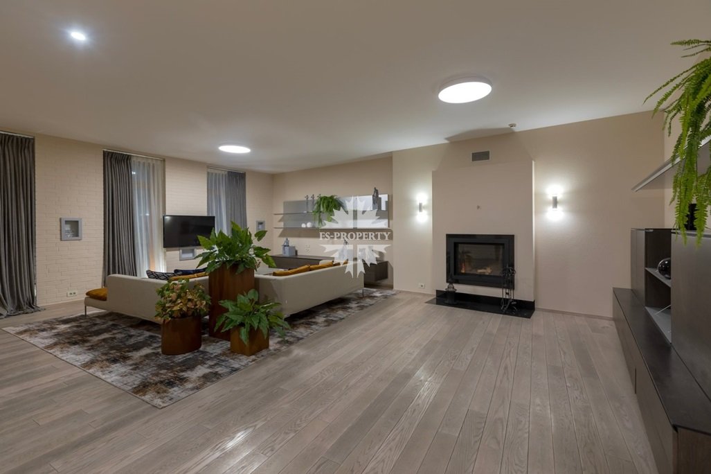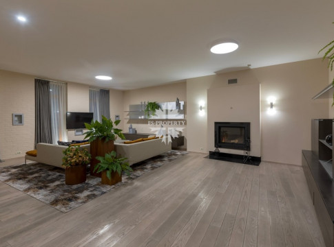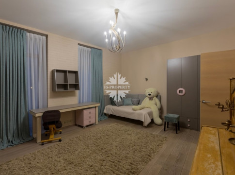 Планировка: кухня-столовая, гостиная с камином, мастер-спальня с ванной комнатой и гардеробной, спальня с ванной комнатой, гостевой санузел.