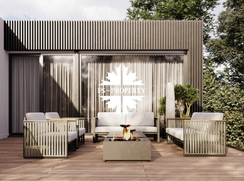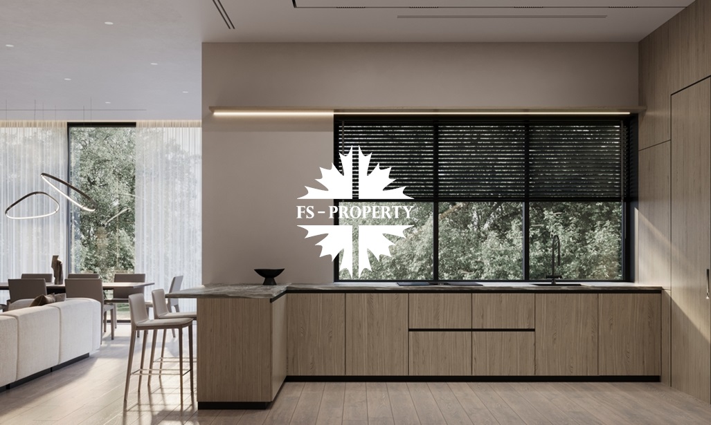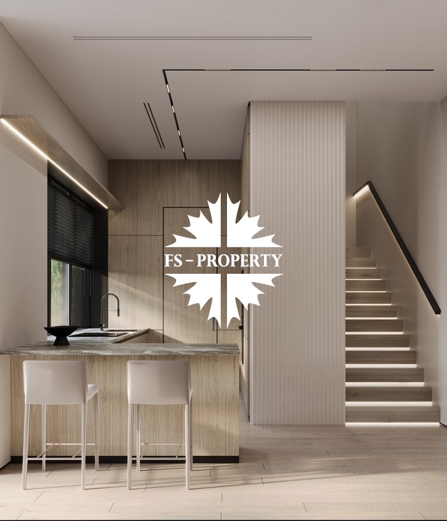 1 этаж: просторная гостиная с обеденной зоной и кухней, уединенный кабинет, который можно использовать под гостевую комнату или хоум офис, 2 санузла, кладовая и постирочная, примыкающая терраса. Потолки – 4, 15м