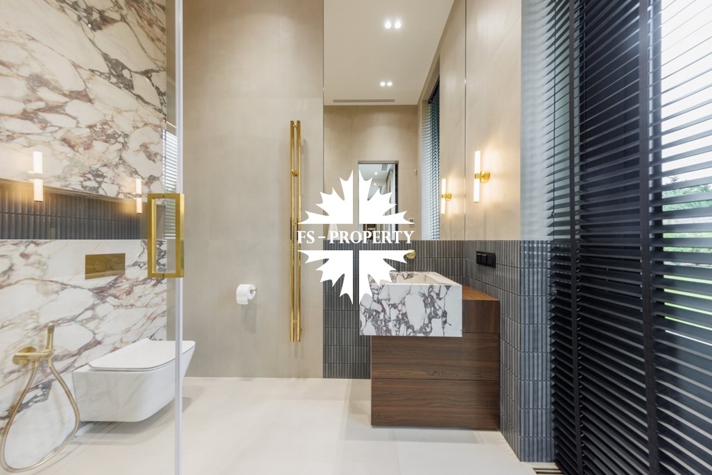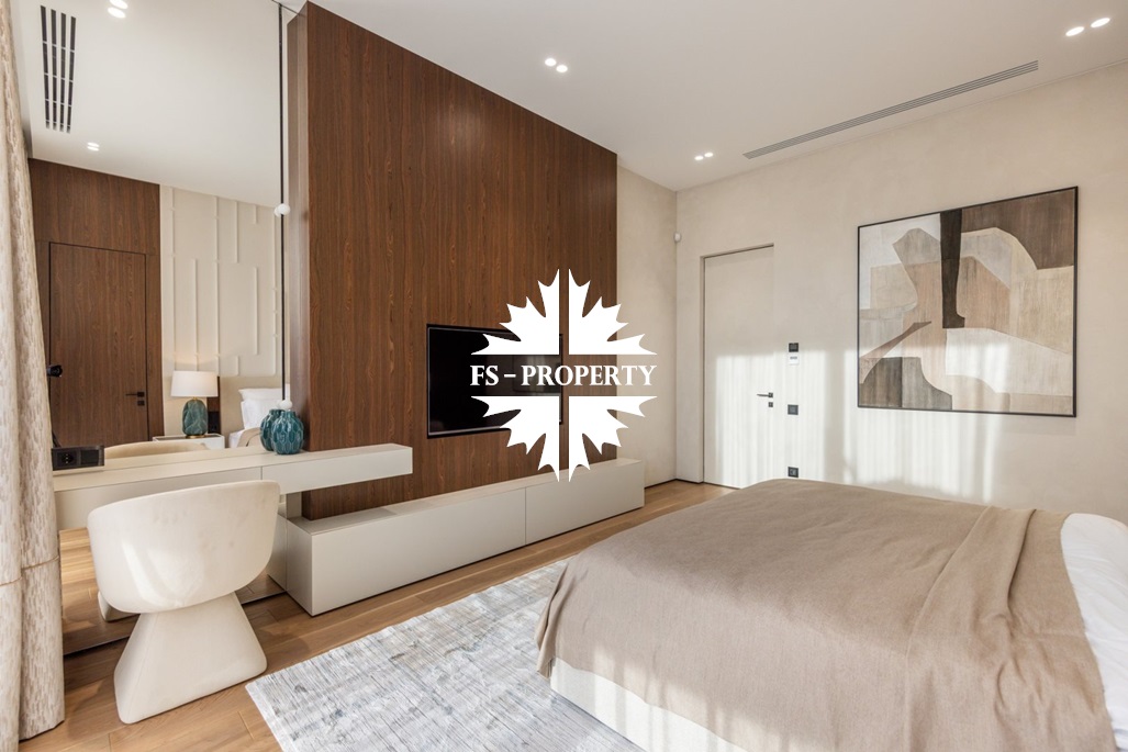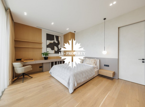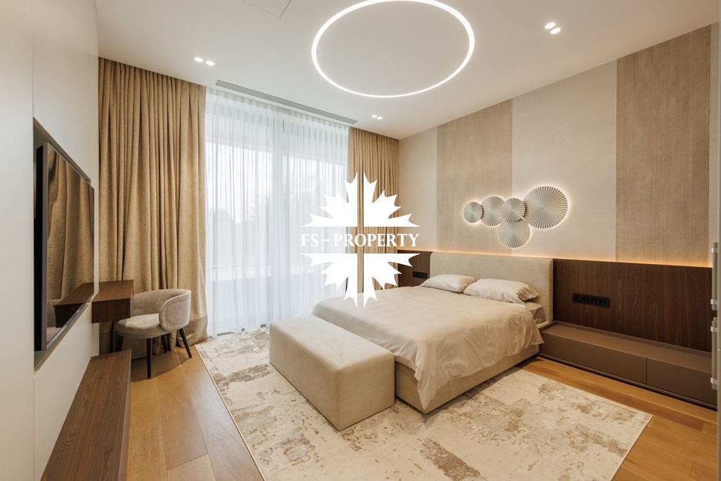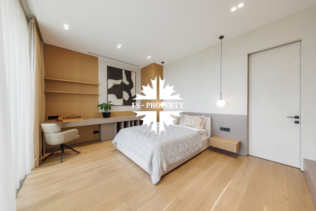 2 этаж (229м): мастер-блок, включающий просторную хозяйскую спальню с гардеробной и санузлом, вторую спальню с собственной гардеробной и санузлом, гостевой блок с гостевой спальней и гостевым санузлом.