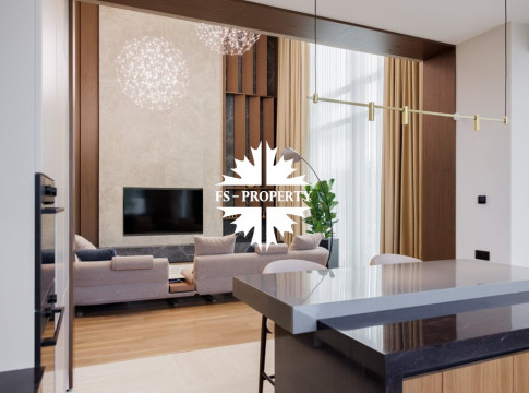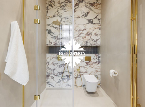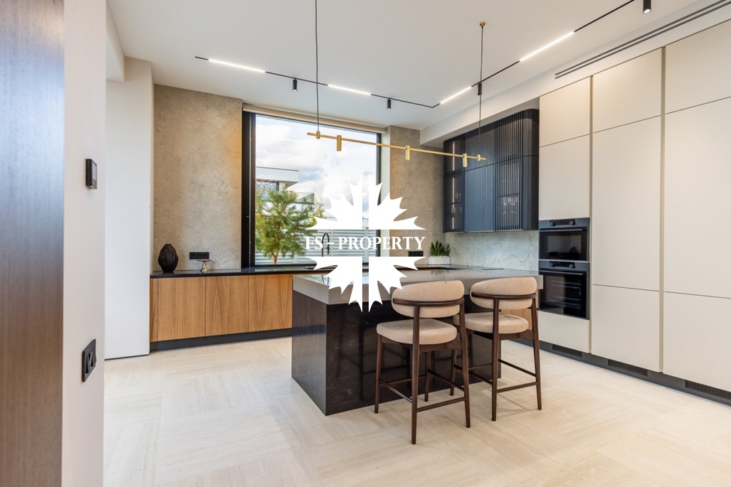 Интерьер дома выдержан в пастельных тонах. Использованы премиальные материалы: итальянская плитка Italon, Laminam, Imola Infinity Brazil, Ariostea Marm, Mirage ginger и другие; паркет из дубовой доски, итальянский текстиль. Мебель итальянских производителей, бытовая техника Asko, сантехника Ramon Soler Испания, ванны итальянского бренда Salini.