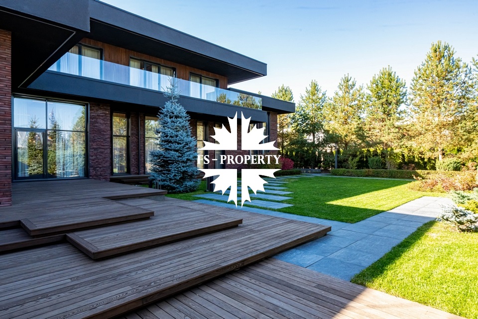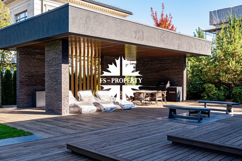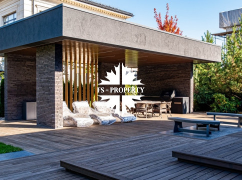 На участке выполнен ландшафтный дизайн с перголами, зелёными изгородями и уютными дорожками. Просторная терраса приглашает к отдыху на свежем воздухе и становится естественным продолжением дома в летние месяцы. Уличная кухня оборудована техникой Bosch и грилем Napoleon, что делает летние вечера особенно приятными.