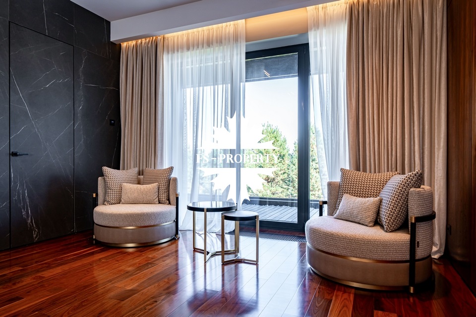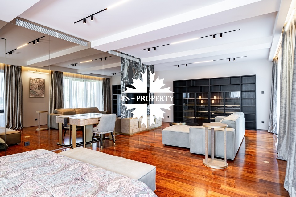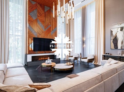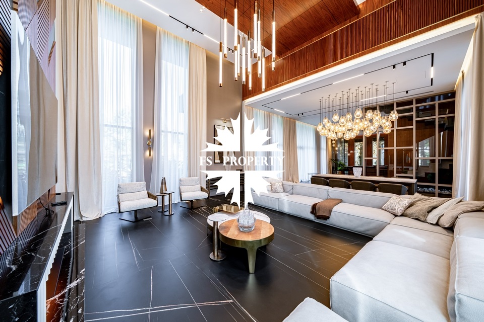 Предлагается к продаже новый особняк со СПА-зоной в КП «Ренессанс Парк». Дом площадью 745 м² с 6 спальнями расположен на видовом участке 22,2 сотки в одном из самых престижных поселков «Ренессанс Парк» на Новой Риге. Элегантная архитектура в духе Райта, идеальные пропорции и виды на зелёные аллеи создают атмосферу простора и покоя.
