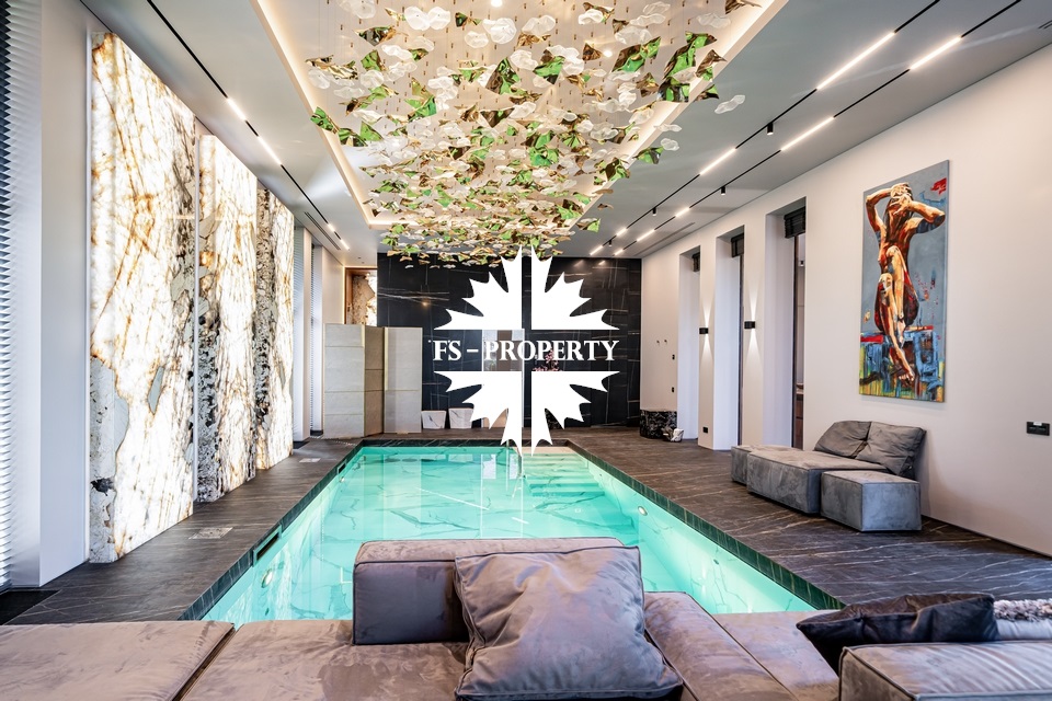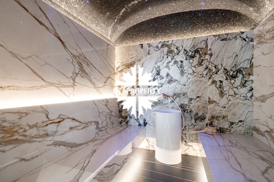 СПА-зона — сердце дома. Бассейн размером 3,6×8 м с системой противотока Aquamaster и зоной гидромассажа дарит ощущение полного расслабления. Панорамное остекление наполняет пространство светом, позволяя наслаждаться видом на участок и природой за окном. Хаммам и зона отдыха создают пространство для восстановления сил и уединения.