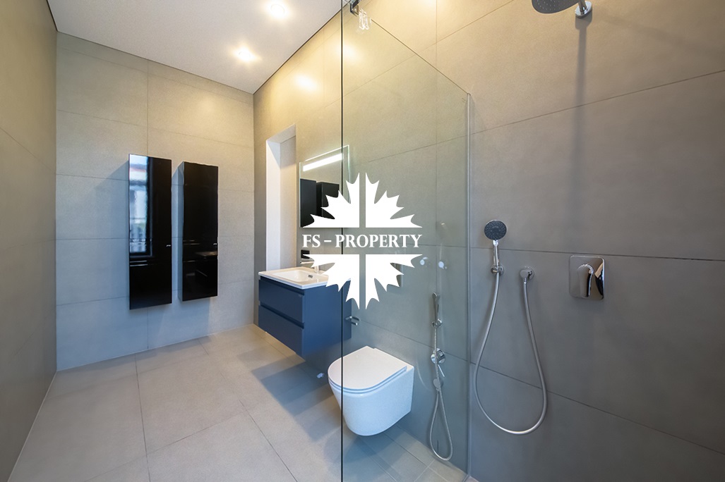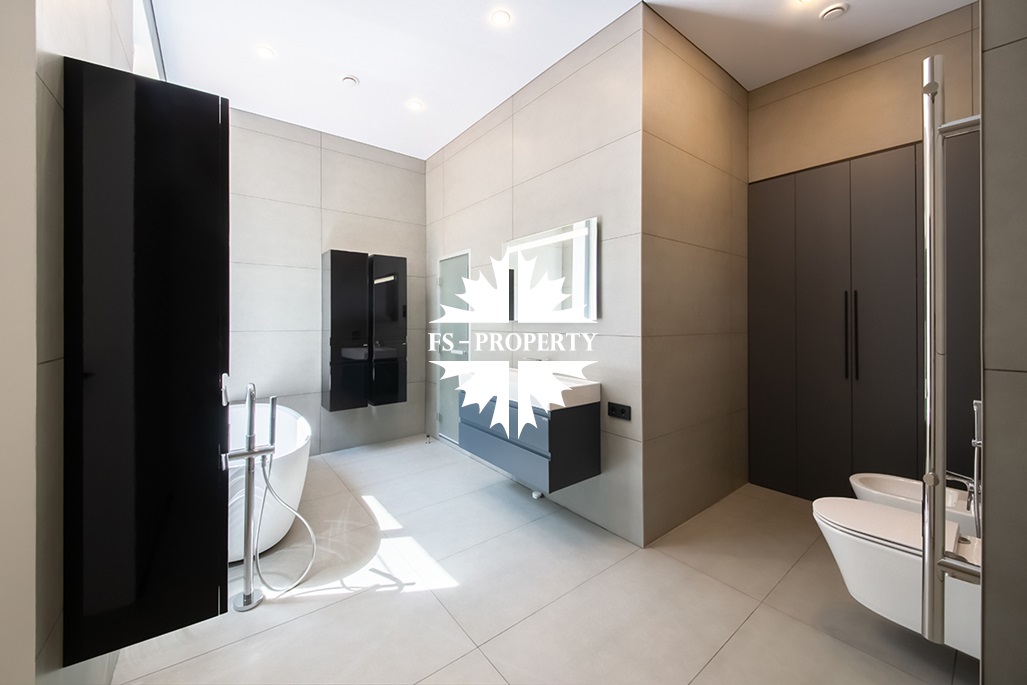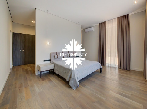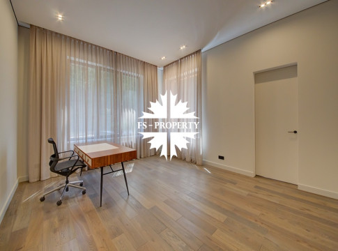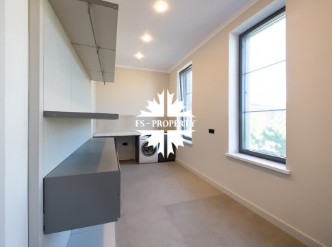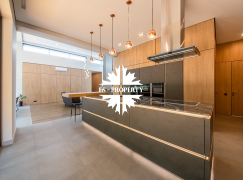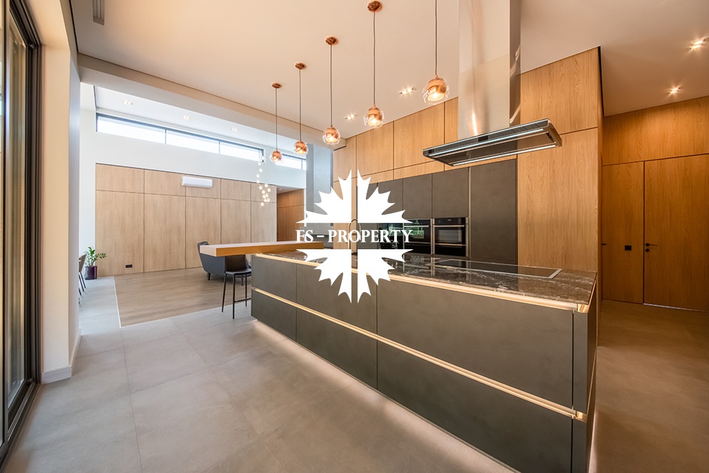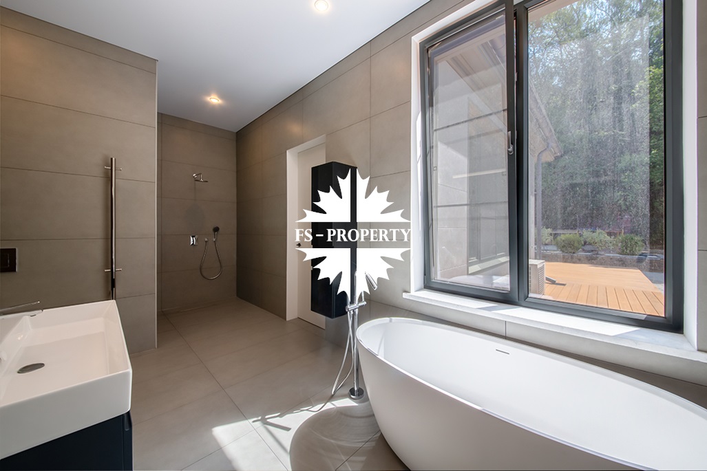 В доме удобная планировка: мастер-спальня со своим санузлом, ванной комнатой и гардеробной, спальня с санузлом, кабинет, две детские спальни с санузлом, гостевой санузел, хозяйственная комната, хаммам. Гостиная с каминным залом и гостиная с зоной отдыха, бойлерная, система очистки воды. Из кухонной зоны есть выход на просторную веранду и зону барбекю.
