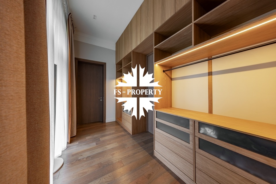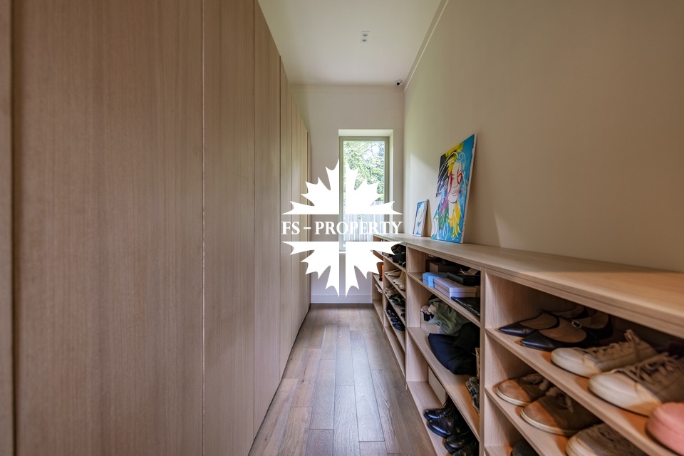 В доме предусмотрено всё для комфортной жизни: просторная гостиная-столовая с кухней и отдельной технической кухней, холл галерея, гардеробные, 4 спальни — каждая со своим с/у и гардеробной, а также кабинет и игровая комната в двух уровнях.