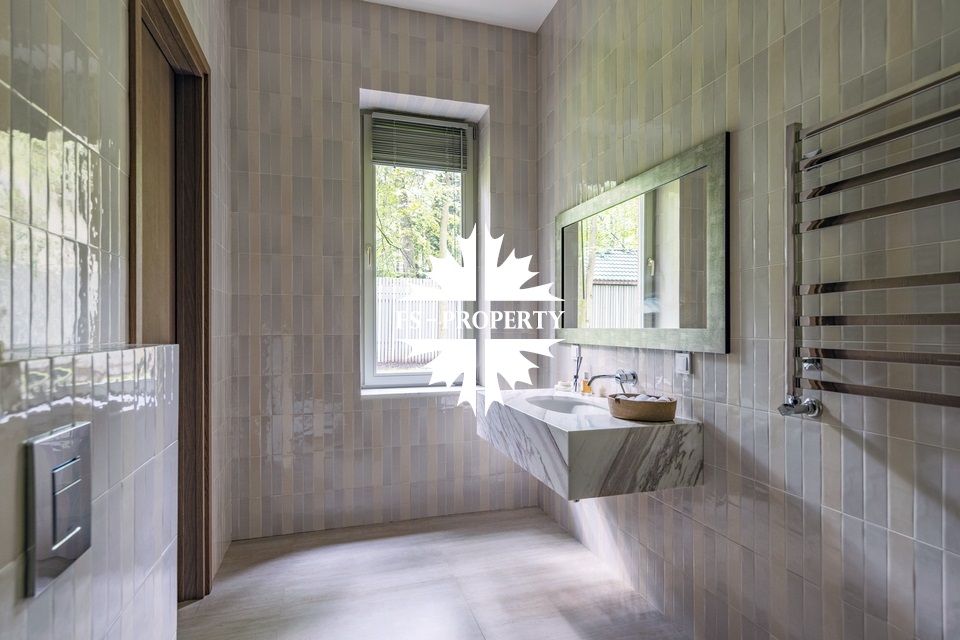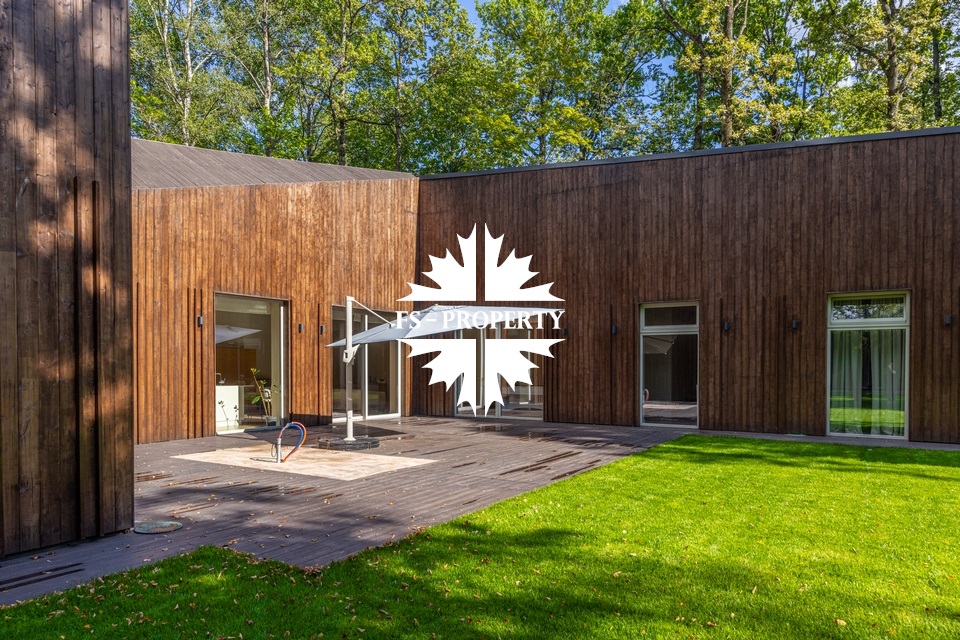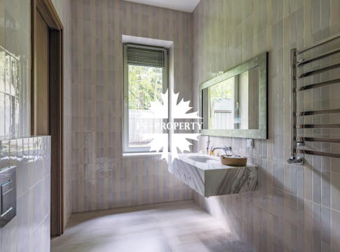 Технологичность не уступает эстетике: приточно-вытяжная вентиляция, кондиционирование, повышенное давление воды, водоочистка, электроприводы штор, датчики протечек, видеонаблюдение, закладные под бассейн на участке, мощность 25 кВт электричества.