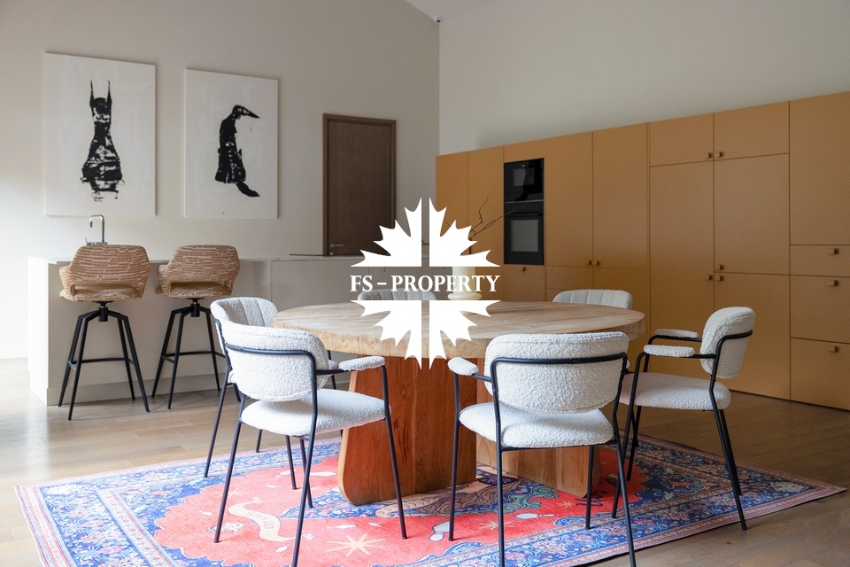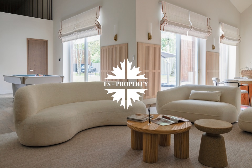 Вилла Aura — одноуровневый дом площадью 550 м² с функциональной планировкой и потолками до 7 метров. Интерьер выполнен в скандинавском стиле с элементами рустика и contemporary: светлые пространства, натуральные материалы, фактурные акценты и воздушность создают гармонию уюта и масштаба.