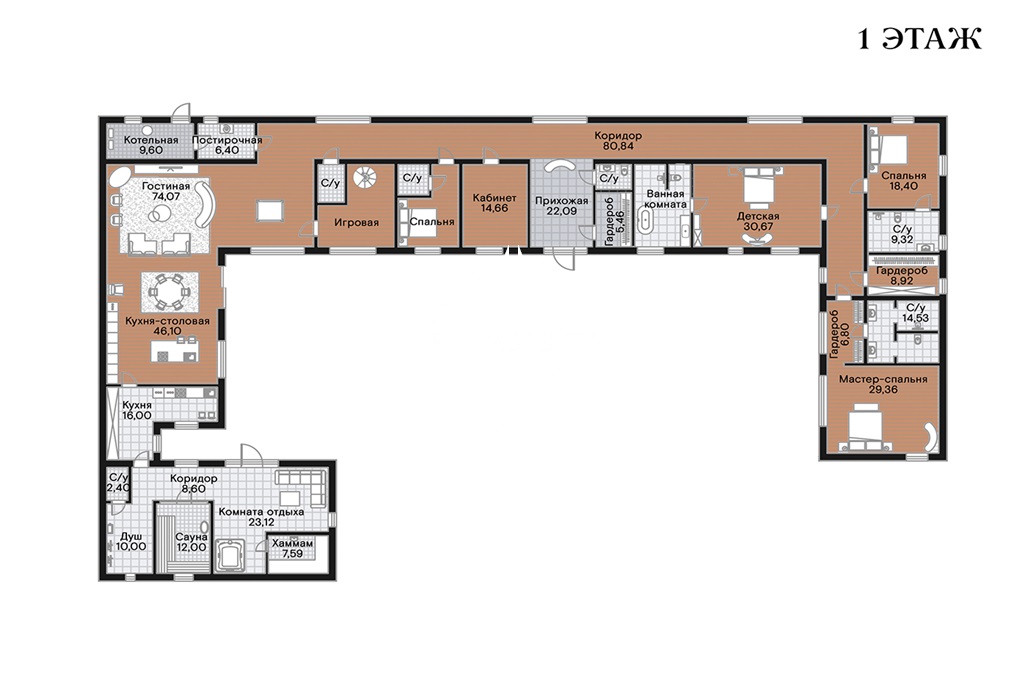 ОДНОУРОВНЕВАЯ ВИЛЛА СО СПА-ЗОНОЙ