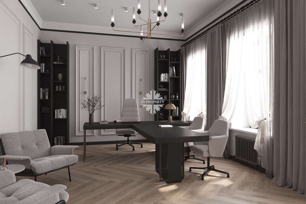 Впечатляющая по красоте и стилю отделка искусно дополнена мебелью лучших европейских фабрик уровня de luxe: Henge, Poltrona Frau, Gallotti& Radice, Tonin, Codutti, Pedrali, Deephouse.
