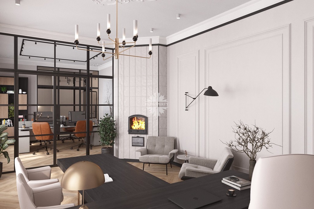 Административное - жилое 851,6 м2, в том числе 2 жилые резиденции (квартиры) площадью 218,4 и 147,3 м2;