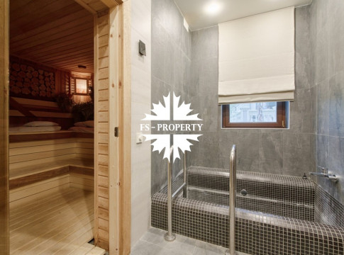 Также на красивом ухоженном тихом участке 12,5 соток расположен отдельно стоящий Спа-комплекс с финской сауной с солевой стеной, купелью, с/у, комнатой отдыха, кухней и террасой с зоной BBQ, навес на 2 автомобиля.