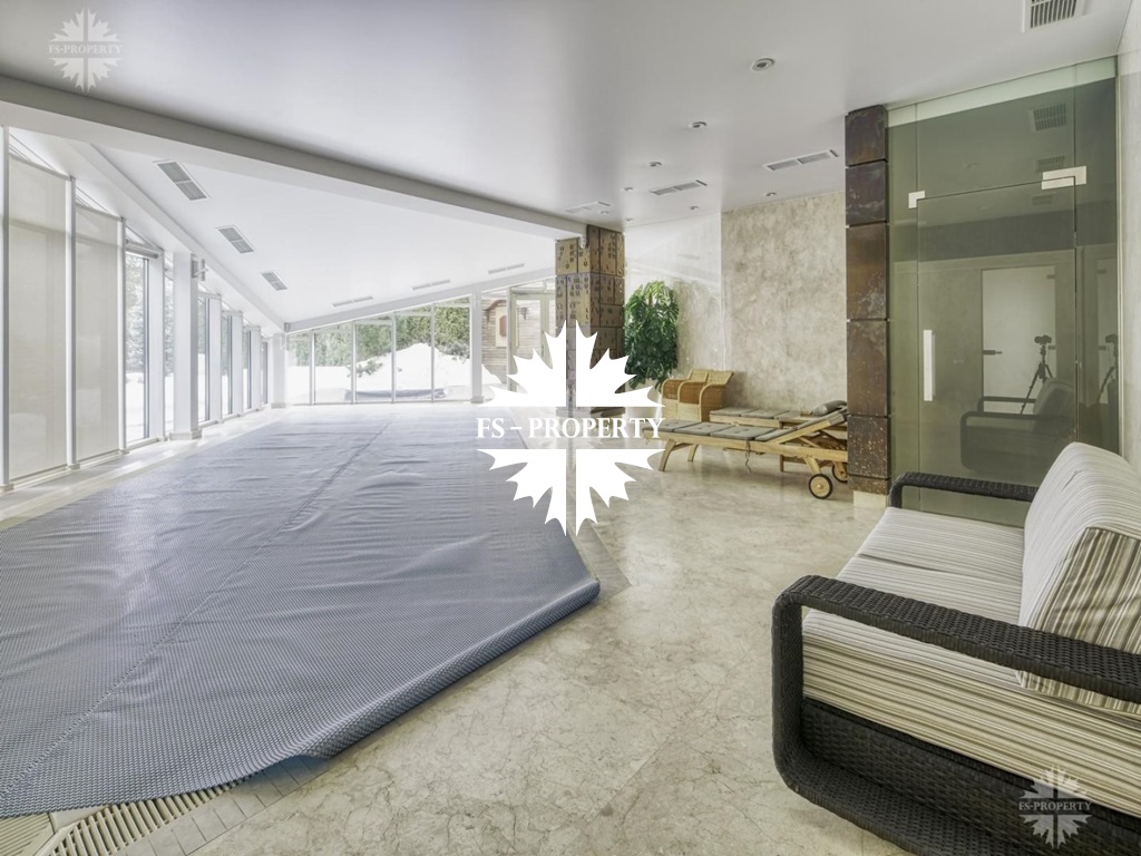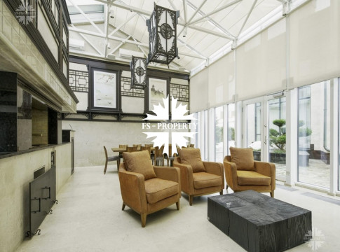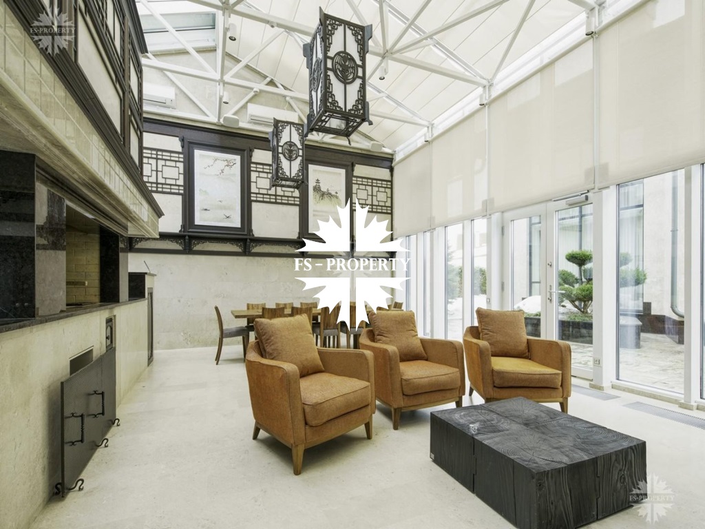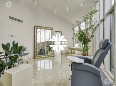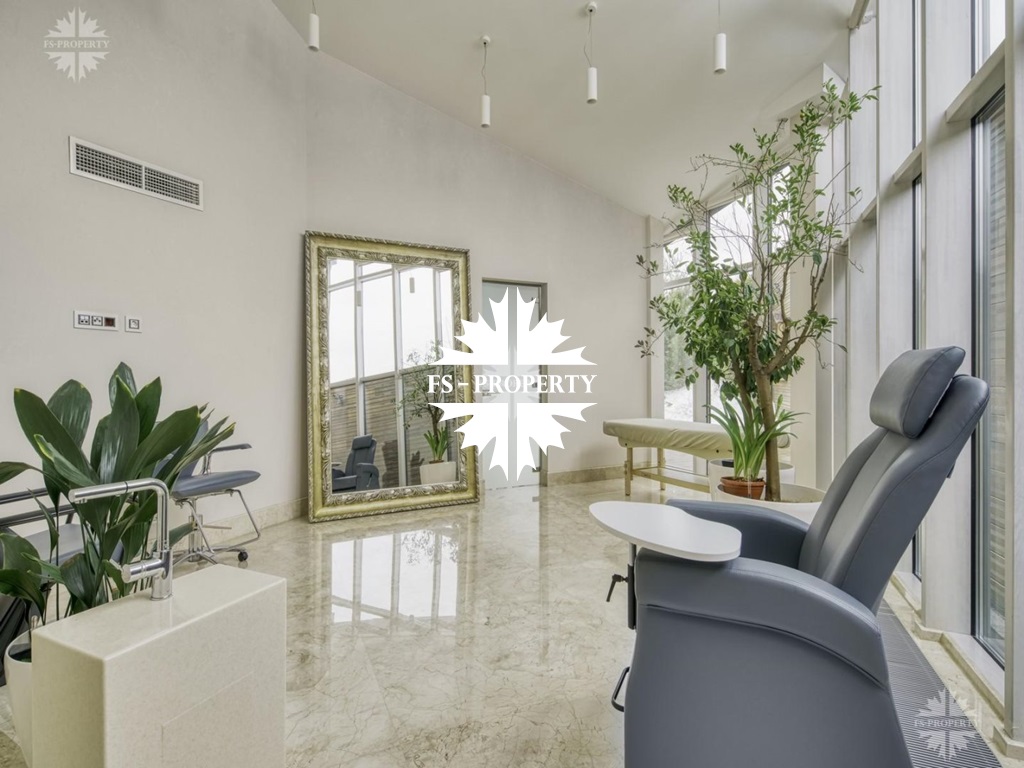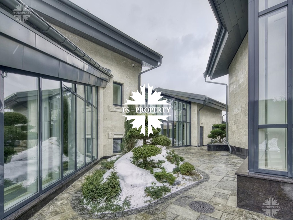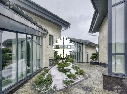 Архитектурный ансамбль включает в себя несколько отдельных зданий, соединенных подземным переходом. Общая площадь строений 1 800 м2, участок 15 соток. Безупречная планировка с внутренним двориком и красивым ландшафтным дизайном и газоном.